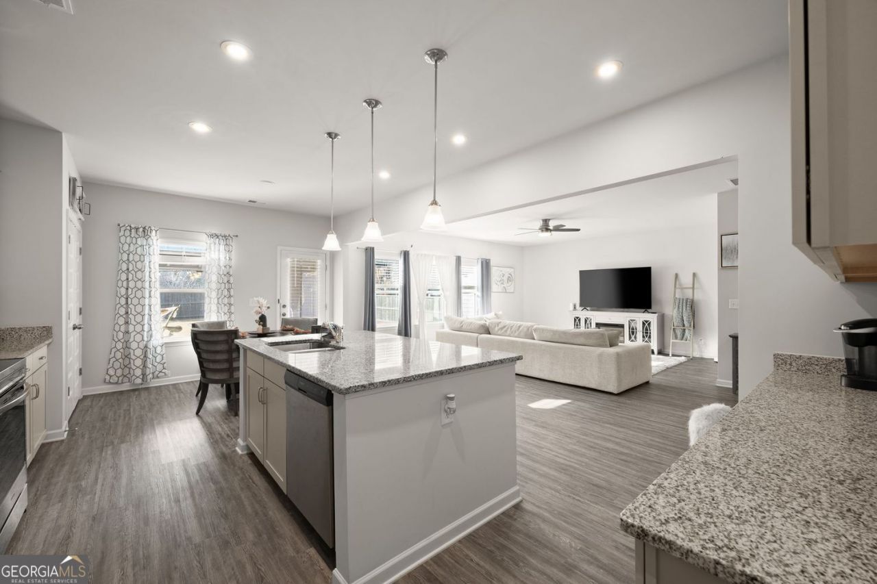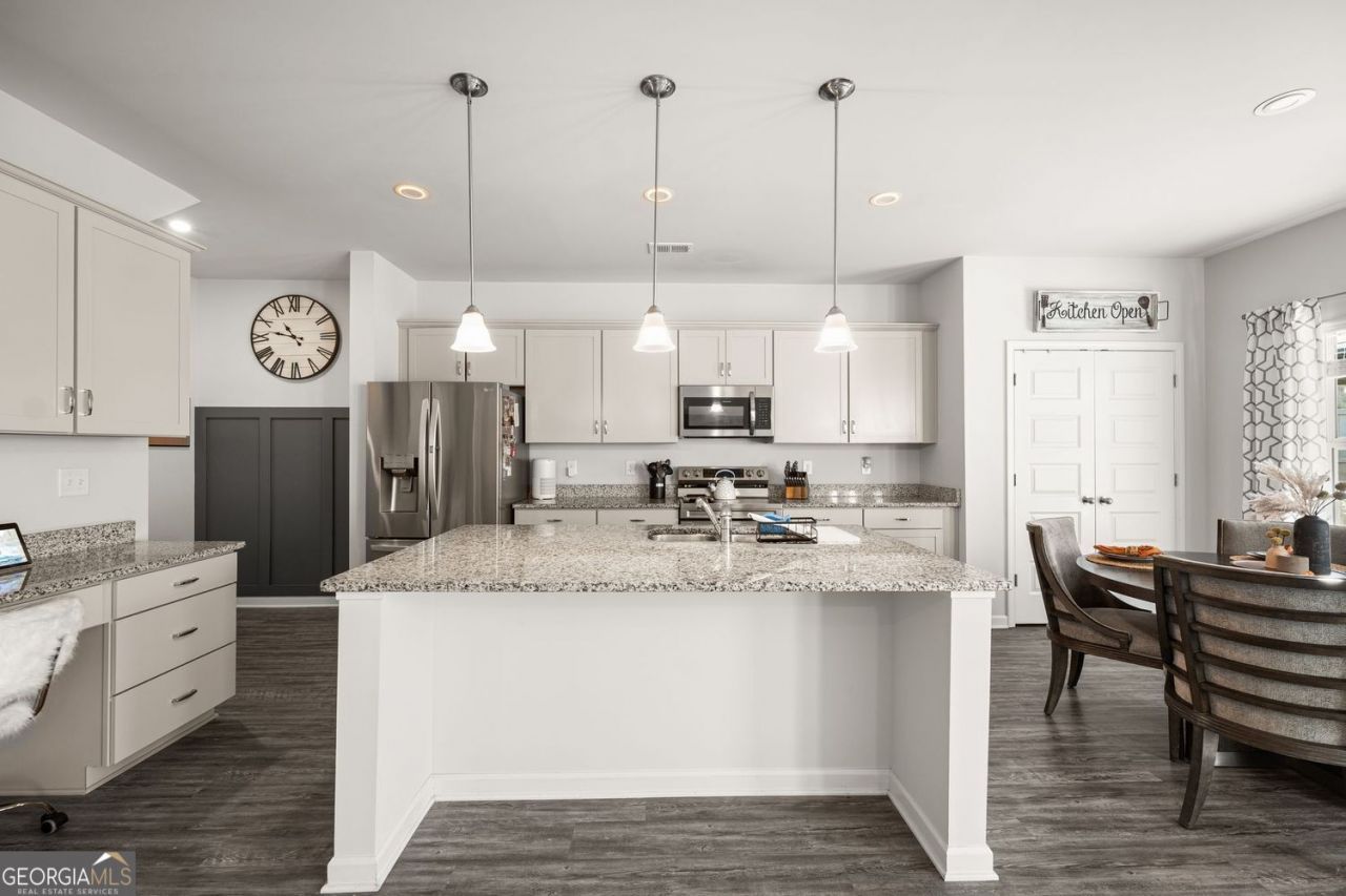 Welcome to 1074 Campbell Pine Trail in Lawrenceville! Built in 2021 and meticulously maintained, this beautiful 4-bedroom, 2.5-bath home offers 2,640 square feet of thoughtfully designed living space with modern finishes throughout. The main level features a bright open-concept floor plan ideal for everyday living and entertaining. The spacious eat-in kitchen offers ample cabinet and counter space and flows seamlessly into the living area, creating a comfortable gathering space for family and friends. Fresh paint throughout gives the home a crisp, move-in-ready feel, while recessed dimmable lighting allows you to easily set the perfect ambiance. Upstairs, you'll find four generously sized bedrooms including an oversized primary suite that provides a relaxing retreat with space for a sitting area and a large walk-in closet. A separate upstairs laundry room adds everyday convenience and functionality. Step outside to enjoy the extended patio and pergola, creating a fantastic outdoor living space perfect for relaxing or hosting guests. The fully fenced backyard offers privacy and plenty of room to play, garden, or entertain. Residents also enjoy access to a neighborhood fire pit gathering area, providing a great space to connect with neighbors and enjoy evenings outdoors. Conveniently located near shopping, dining, and major commuting routes, the home is also just minutes from the new Dacula Amphitheater currently under development, adding exciting future amenities to the area.