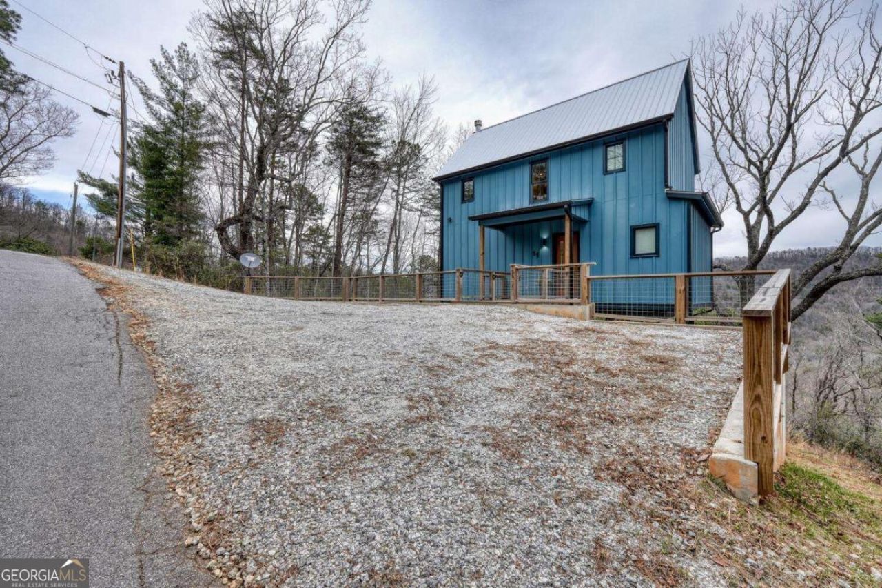 Perched atop Screamer Mountain in Clayton, GA, this stunning contemporary home-completed in 2023-offers the perfect blend of modern design and mountain serenity. Thoughtfully crafted with 10-foot ceilings on the main level, the home comes mostly furnished with tasteful pieces that complement its sleek aesthetic. The kitchen is both stylish and functional, featuring stainless steel appliances, solid surface countertops, a walk-in pantry, and a spacious island with seating and abundant cabinet storage-ideal for casual dining and entertaining. An open great room flows seamlessly onto a striking cantilevered deck, where you can soak in breathtaking views of the North Georgia mountains. The main level also includes a versatile bedroom that can easily serve as a home office. Upstairs, two private suites each offer their own bath and continue to capture the home's incredible panoramic views, while a centrally located laundry area on the landing adds everyday convenience. Already zoned VC, this property presents an excellent opportunity for investment or short-term rental use. Just minutes from downtown Clayton, this is modern mountain living at its finest.