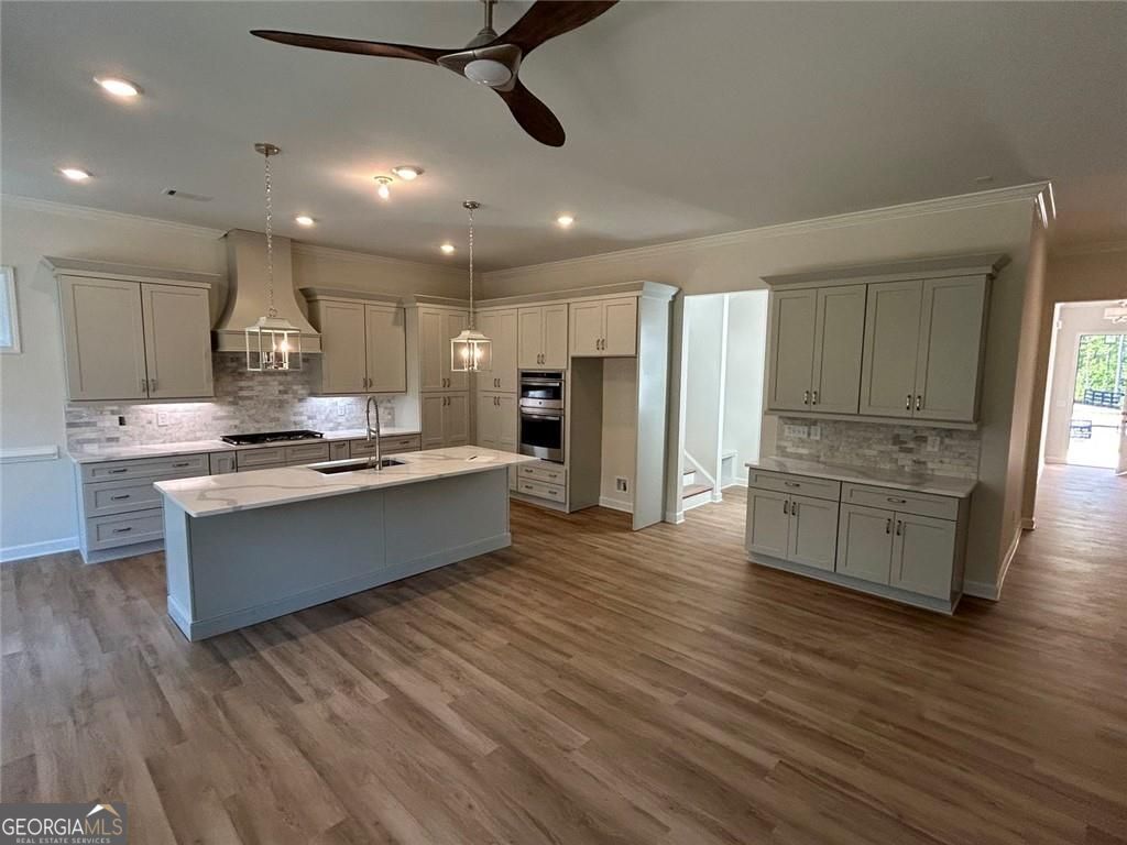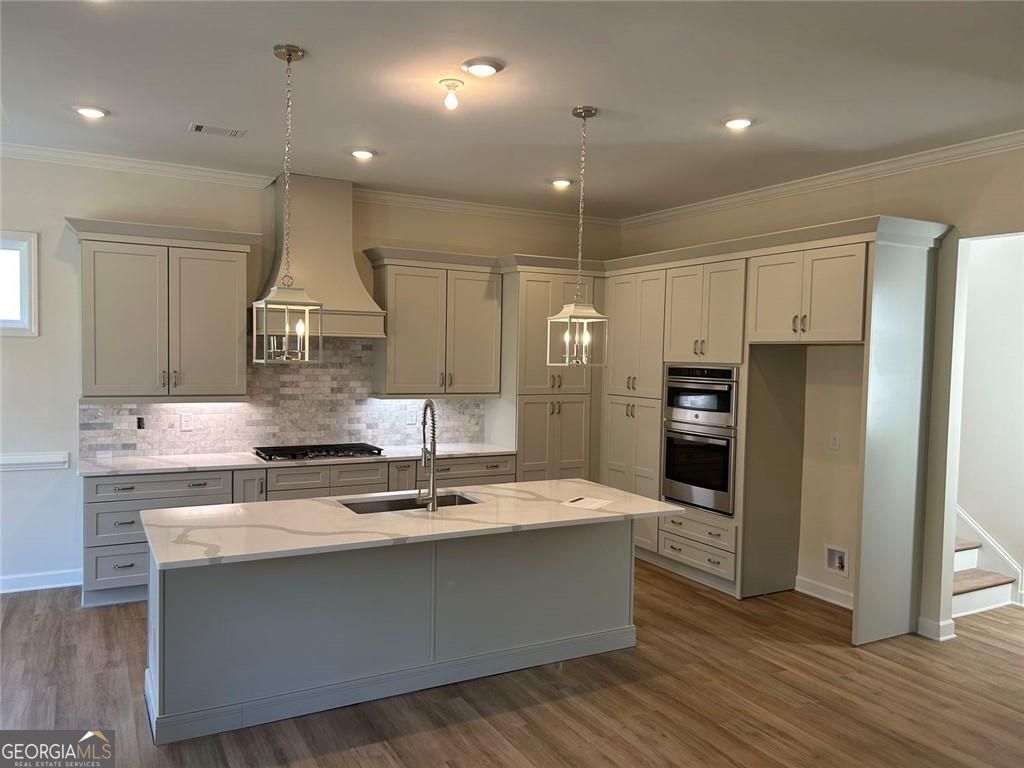 Don't miss out only 5 homes remaining-Welcome to the luxurious Willow wood floor plan. This plan features a bright, open gourmet kitchen w/ a grand island. Stainless steel appliance package includes oversized cooktop and oven. Beautifully designed cabinets and countertops throughout. The spacious owner suite and two secondary bedrooms that are conveniently located on the main floor. Owners' suite comes fit with a stunning double vanity, large zero-entry designer tile shower, and incredible tile flooring. Upstairs features the third bedroom w/ a full bath and large game room. Convenient features of the home include hardwood flooring throughout, oversized entry ways, high ceilings, cabinet microwave, oversized covered patio, rocking chair front porch, luxurious lighting package, easy access floor plan, HOA maintained landscaping, and Weekly trash pick-up. All located on a beautifully landscaped private cul-de-sac lot. You will love this gated, low-maintenance, active adult community, located close to sought after downtown Woodstock, and nearby Towne Lake, with ideal shopping and dining. Home is ready