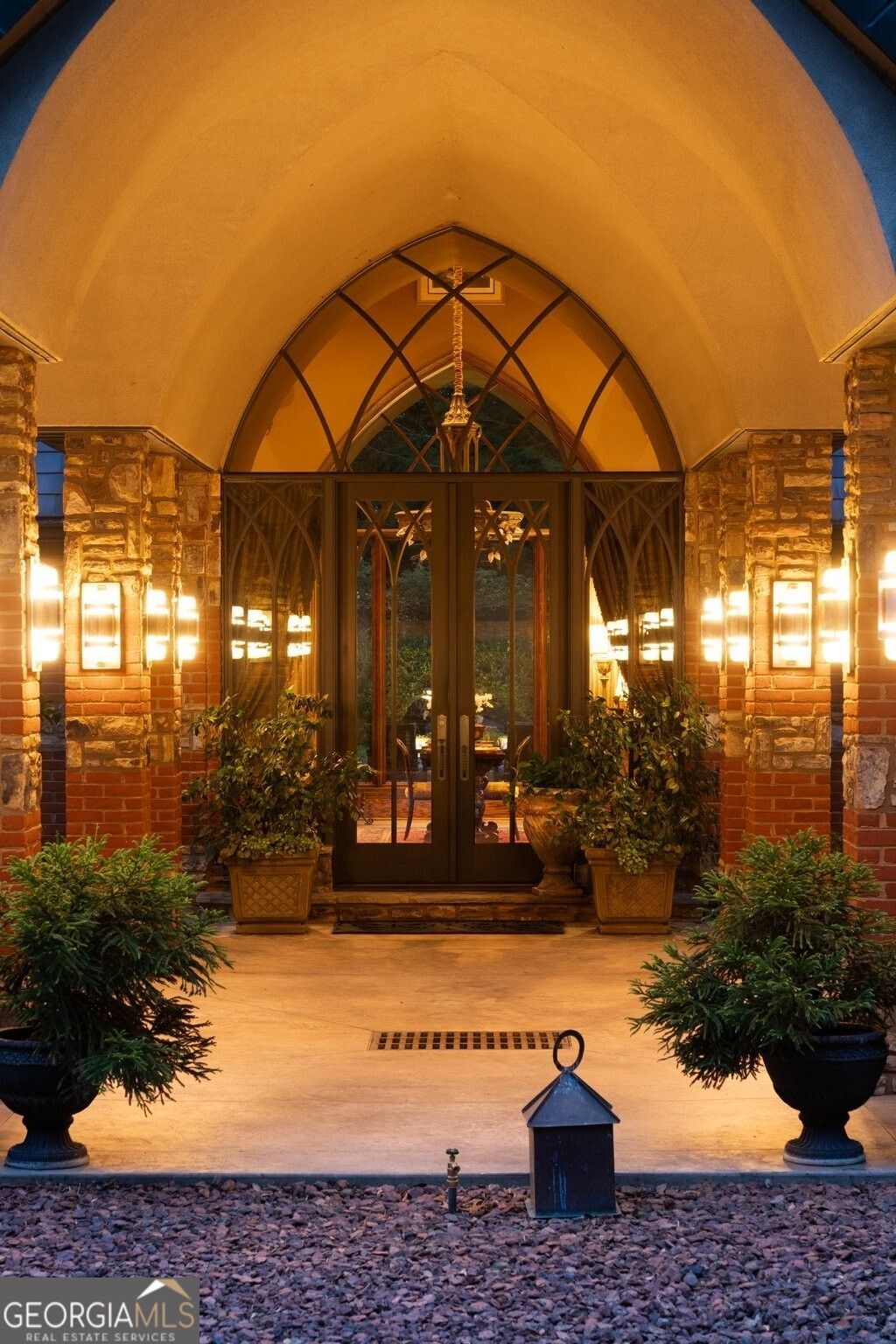 Nestled on approximately 8 private, gated acres, this extraordinary architectural masterpiece blends timeless elegance with luxurious, modern amenities. With 4 bedrooms, 4 full baths, and 2 half baths, the estate is a sanctuary of bespoke design and enduring craftsmanship at every turn. From the moment you arrive, you're greeted by a showstopping copper roof, fascia, and gutters - a stunning and enduring feature that sets the tone for the home's unmatched quality. The maintenance-free exterior offers beauty and peace of mind. Step inside to heated concrete floors on the main level and gleaming hardwoods upstairs, complemented by solid oak doors, hand-cut oak trim, and custom woodwork throughout. The heart of the home is a gourmet kitchen designed for both everyday luxury and effortless entertaining. A Wolf range framed by stone and brick is paired with a striking copper backsplash that echoes the home's distinctive exterior. High-end appliances include a Sub-Zero refrigerator, a separate Sub-Zero freezer, and a Thermador warming drawer. The adjacent scullery and butler's pantry - a caterer's dream - offer custom built-in cabinetry, a wine rack, and generous prep space. The scullery opens directly to the private courtyard, allowing for seamless indoor-outdoor entertaining centered around the stunning 35-foot reflecting pond. The primary suite is an indulgent retreat, offering his and hers separate bathrooms - one with a steam shower - and a show-stopping two-story custom closet complete with a rolling library ladder. A private office with a built-in safe room provides both function and security. Every feature in this home was thoughtfully designed - from the commercial-grade drainage system beneath the surface to the custom cabinetry, antique lighting, and artisan details throughout. Antique European chandeliers, including a grand entryway piece imported from France, add dramatic charm, while locally painted stained-glass windows bring a distinctive artistic touch. Glass display cabinetry and custom bookcases are thoughtfully placed throughout. An elevator offers seamless access to all levels, including a soundproof apartment with full kitchen and private entrance above the heated and cooled 3-car garage - ideal for guests or multigenerational living. Outdoors, unwind in a landscaped courtyard featuring the reflecting pond filled with goldfish, outdoor lighting, and a full irrigation system. Additional highlights include barreled ceilings, a central vacuum system, surround sound in the great room, a water purification system, and more. This one-of-a-kind estate is more than a home - it's a curated experience of luxury, privacy, and artistry. Shown by private appointment only.
