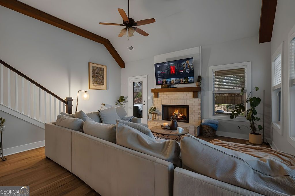 Welcome to 1201 Shiva Boulevard in the highly sought-after Edenwilde community of Winder. Built in 2020 and offering over 2,000 square feet of thoughtfully designed living space, this 4 bedroom, 2.5 bathroom home blends modern finishes with a functional layout in a quiet, established neighborhood. From the moment you arrive, you'll appreciate the inviting curb appeal, covered front porch, and clean exterior lines. Inside, the open floor plan is filled with natural light and features durable laminate wood flooring throughout the main living areas, creating a warm and cohesive feel. The kitchen serves as the heart of the home, designed for both everyday living and entertaining, complete with granite countertops, a counter-height island, subway tile backsplash, farmhouse sink, stainless appliances including a gas range, and ample cabinet space. Upstairs, the spacious primary suite offers a true retreat with a large walk-in closet and a private ensuite bath featuring dual vanities with granite countertops, tile flooring, and a tiled stand-up shower. Secondary bedrooms are generously sized and share a well-appointed full bath, while the upstairs loft provides flexible space ideal for a home office, media room, playroom, or workout area. Additional highlights include a two-car garage with driveway parking, a concrete patio perfect for outdoor gatherings, a private backyard, gas fireplace in the living room, central HVAC, septic system, and a low annual HOA. Located within the Bear Creek Middle and Winder-Barrow High school district and just minutes from shopping, dining, and major highways, this move-in-ready home offers the perfect balance of comfort, convenience, and value in Barrow County.