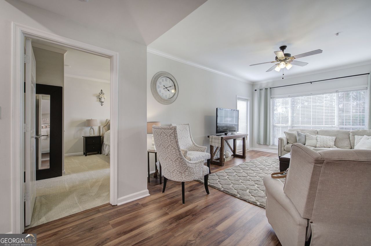 Experience resort-style living with unbeatable convenience in this beautifully updated, light-filled 2-bedroom, 2-bath condo located just one mile from the vibrant energy of Truist Park and The Battery Atlanta. This desirable walk-up unit welcomes you with smooth ceilings, fresh paint (2022), and stunning engineered wood floors that flow through a spacious, open-concept layout. The modern kitchen is a chef's delight, featuring granite countertops, stainless steel appliances, a breakfast bar, and brand-new lighting. Practicality meets peace of mind with a new water heater installed in 2024 and a private balcony that includes an extra storage closet. Set within a secure, gated community, you'll have access to an exceptional suite of amenities including a sparkling pool with an outdoor kitchen, tennis courts, a fitness center, community gardens, and even a car wash station. When you aren't enjoying local dining and shopping, the scenic trails of the Chattahoochee River National Recreation Area are just minutes away for outdoor adventures. This move-in-ready home is an ideal opportunity for first-time buyers, students, or professionals looking for low-maintenance living in a prime location. Eligible buyers may qualify for up to $12,500 in down payment assistance through the Georgia Dream Homeownership Program, and the master insurance policy is fully Fannie/Freddie compliant for conventional financing. Don't miss your chance to own this complete lifestyle package-schedule your tour today!