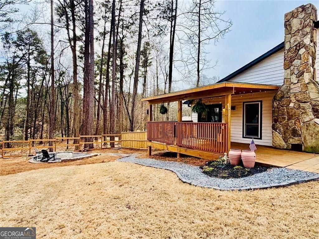 Incredible opportunity to make this beautifully renovated and extensively landscaped East Cobb ranch-with no HOA-your own! Located only 2.5 miles from all that Downtown Woodstock has to offer. From the moment you walk in, you're welcomed by a bright, open floor plan highlighted by vaulted ceilings and a cozy stone fireplace in the family room. New luxury vinyl flooring flows seamlessly throughout the main living areas. The kitchen is truly a showstopper, featuring all-new cabinetry, granite countertops with a matching stove backsplash, a stylish glass tile backsplash, coordinating white glass appliances, and new LVP tile flooring. The split-bedroom layout offers both comfort and privacy. The spacious primary suite boasts dual walk-in closets and a spa-inspired bath complete with a double vanity, updated fixtures, a beautifully tiled shower, and tile flooring. The secondary bath has also been thoughtfully renovated with a garden-style tub with tile surround, new vanity, fixtures, and tile flooring. Additional upgrades include all new windows, French doors leading to the patio, extensive tree removal, professional landscaping with fully sodded front and rear yards, grading improvements, custom stonework, and a 20-foot platform designed for the stunning stone firepit. Imagine hosting family and friends in your fully fenced outdoor oasis, complete with an extended covered patio and cozy evenings under the stars by the firepit. This one deserves a spot at the very top of your must-see list-schedule your showing today! Photo with green grass is AI-enhanced.