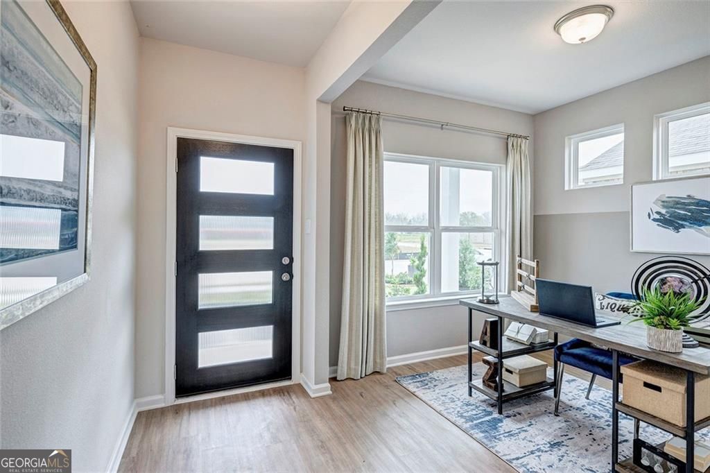 Move-In Ready May! The Piedmont in Saddle Ridge, a sought-after Smith Douglas Homes community in Calhoun, GA, located just 3 miles from I-75 and surrounded by picturesque North Georgia farmland. This beautifully designed new construction ranch home in Calhoun offers the perfect blend of comfort, style, and convenience. Residents can look forward to splashing into summer days at the future community swim club, A charming covered front porch invites you inside to an open-concept layout with 9-foot ceilings and durable luxury vinyl plank flooring, creating a bright and spacious feel throughout the main living areas. Additional windows provide abundant natural light, enhancing the home's warm and welcoming atmosphere. The dining area flows seamlessly into a surprisingly spacious, chef-inspired kitchen featuring granite countertops, 42-inch cabinets, stainless steel appliances, and a large center island-ideal for entertaining and everyday living. The family room showcases a modern linear fireplace as a striking focal point, with direct access to the covered patio and private backyard, perfect for outdoor relaxation. The primary suite, privately situated at the rear of the home, features a generous walk-in closet and a spa-like bath designed for comfort and retreat. This thoughtfully designed ranch plan also includes a convenient mudroom and laundry area just off the garage entry, maximizing organization and functionality. Buyers searching for move-in ready homes in Calhoun GA, new homes near I-75, one-level living, or affordable new construction in Gordon County will appreciate the exceptional value and craftsmanship this home offers. Take advantage of seller incentives with use of preferred lender. Photos are representative of plan and not of actual home.