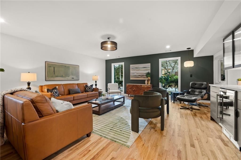Architecturally Distinct Mid-Century Modern Retreat ? A True Discovery Above Cooper Lake RoadSet high above Cooper Lake Road and surrounded by mature trees, this fully rebuilt Mid-Century Modern retreat feels discovered?not just purchased. Designed with intention, it's a home where light moves effortlessly and gatherings feel natural.Seamless openness defines the main level, where a sunken living room, dining, and kitchen connect in one expansive embrace. A custom built-in wood planter?rich with authentic mid-century character?adds architectural presence while maintaining flow.The kitchen is the true heart of the home, featuring double dishwashers, wall oven + separate 36 gas range, a separate butler's pantry with additional sink and dishwasher, abundant custom storage, and an oversized island built for real hosting.A window-wrapped den delivers a signature treehouse feel, overlooking wooded privacy and reinforcing the elevated, serene setting.The primary suite offers treetop views, a large walk-in closet, custom slat wall accents, and a terrazzo spa bath with double shower, rain head, and designer finishes. A private exterior door allows for quiet morning coffee or evening unwind.The fully renovated terrace level provides rare flexibility for multi-generational living, guest retreat, media room, teen suite, or work-from-home space. Intimate backyard areas and an additional fenced wooded parcel preserve privacy while offering room to expand.Outside, the backyard is intimate and manageable, with an additional fenced wooded parcel offering future expansion potential if a larger yard is desired. The covered carport and extended drive provide ample parking while maintaining architectural symmetry.True Restoration ? Not CosmeticNew roof, plumbing, electrical, and windowsDual HVAC systems with four zonesModern mechanical efficiency throughoutNot cookie-cutter. Not builder-grade..Designed with intention and built for gathering. Architectural integrity paired with next-level reliability rarely presents itself in Smyrna.