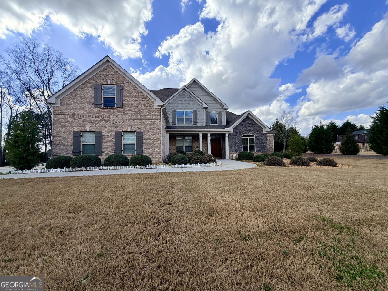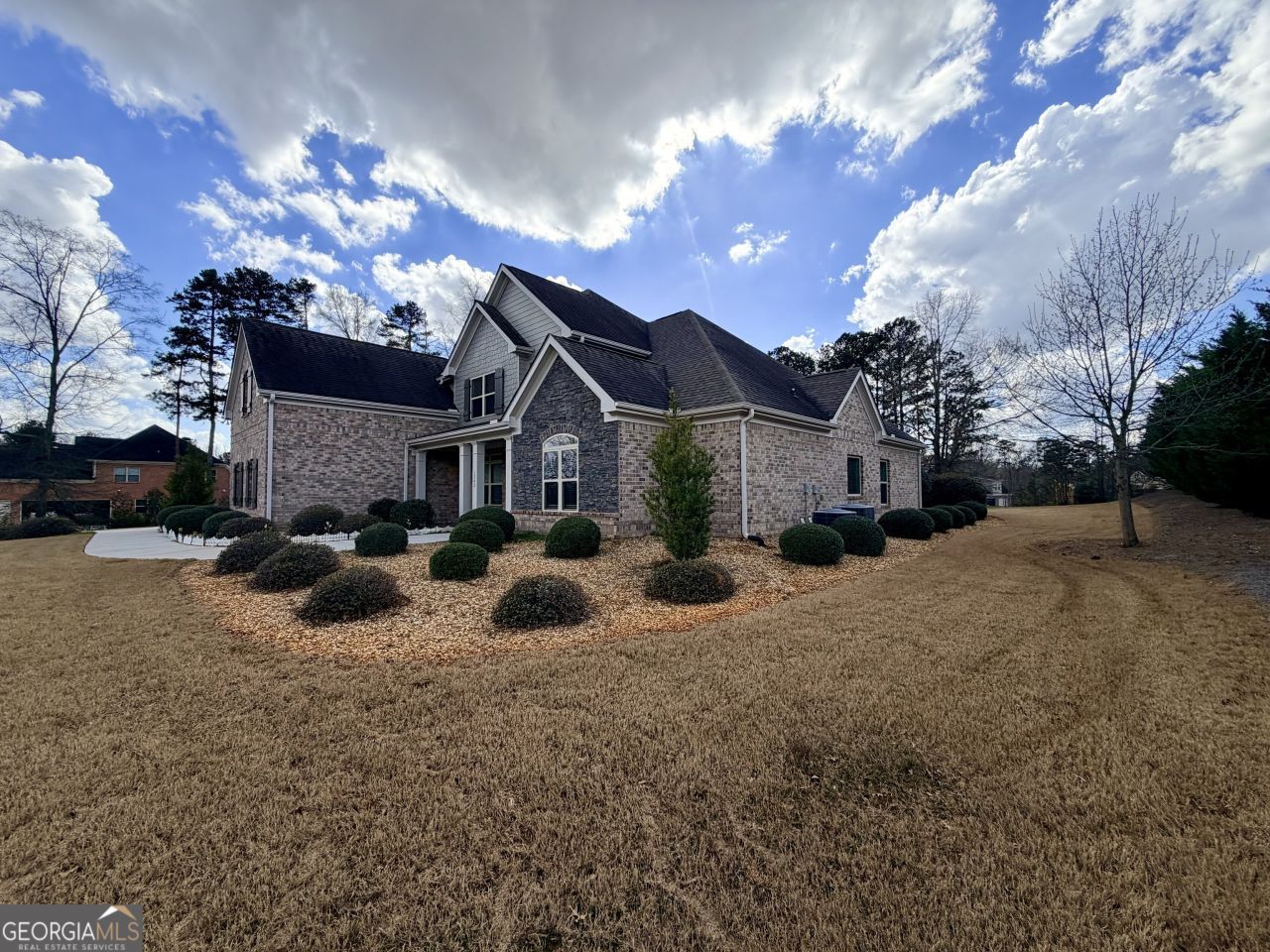 Elegant Brick Home with Timeless Design & Move-In Ready Appeal This beautifully maintained brick home with HardiePlank shake accents offers exceptional craftsmanship, thoughtful design, and has been freshly painted for a truly move-in ready experience. Featuring 4 bedrooms, 3.5 baths, and a spacious bonus room, the layout provides flexibility for everyday living, entertaining, or work from home needs. Upon entry, rich hardwood floors welcome you through the foyer and flow seamlessly throughout the dining room, living room, family room, kitchen, keeping room, and breakfast area. The kitchen is well-appointed with custom stained cabinetry and stainless steel Electrolux appliances, including double ovens, cooktop with vented microwave, and dishwasher,ideal for both everyday living and entertaining. Custom trim details elevate the interior, including coffered ceilings and substantial wainscoting in the dining room. Two fireplaces with stone surrounds, wood mantels, and custom trim add warmth and architectural character. The vaulted family room ceiling creates an open, airy feel and is complemented by an upstairs overlook. Additional upgrades include built-in in-wall speaker system throughout the first floor and extending to the screened porch, first-floor window security features, oil-rubbed bronze lighting and hardware, ceramic tile flooring in baths and laundry, tiled tub surrounds and walk-in shower, 2 faux wood blinds, and a complete hardwired security system. Outdoor living is enhanced by a screened porch overlooking the professionally landscaped, fully sodded, and irrigated front and back yard-ideal for relaxing or entertaining year-round. Freshly painted and meticulously maintained, this home offers enduring quality, thoughtful upgrades, and true move-in ready convenience.