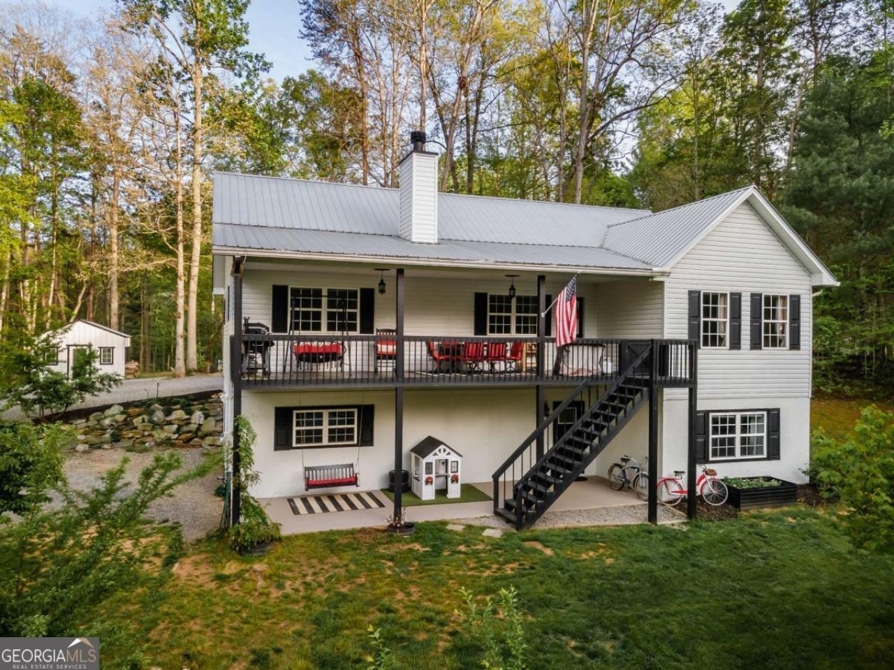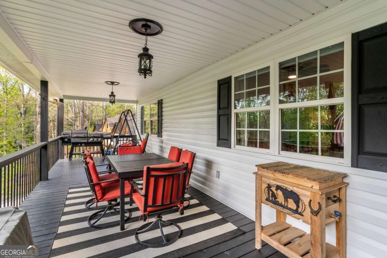 Set in the highly sought-after Trackrock area, known as one of the most beautiful pockets of the North Georgia mountains, this thoughtfully updated home offers a blend of privacy, flexibility, and elevated everyday living - all without the constraints of an HOA! Inside, the home welcomes you with a warm, inviting atmosphere, where natural light fills the main living space and a cozy wood burning fireplace creates the perfect place to gather. The updated kitchen blends modern touches with mountain charm, featuring Caf appliances, leathered granite countertops, and a Merola tile backsplash. Fresh interior and exterior paint, along with updated fixtures and hardware, create a cohesive, move-in-ready feel. The layout continues with a terrace level designed for flexibility, offering a second living area and additional flex space for a home office, a place to host guests, or whatever best fits your needs. New flooring on this level continues that refreshed feel. Outdoor living feels like a natural extension of the home, with a screened-in back porch offering a front-row seat to the beauty and stillness of the surrounding mountains - perfect for slow mornings and evenings by the fire. The fenced and gated property adds privacy, while fruit trees and a greenhouse create a thoughtful, homestead-inspired setting, ideal for enjoying the rhythm of mountain life or gathering with friends and family. Additional features include a whole-house water filtration system, and the unrestricted property allows you the freedom to truly make it your own. Tucked away in Trackrock, the setting feels private and serene, yet just a short drive to town for everyday essentials - offering the best of both worlds. A beautiful setting, meaningful updates, and flexible spaces - this is mountain living made easy!