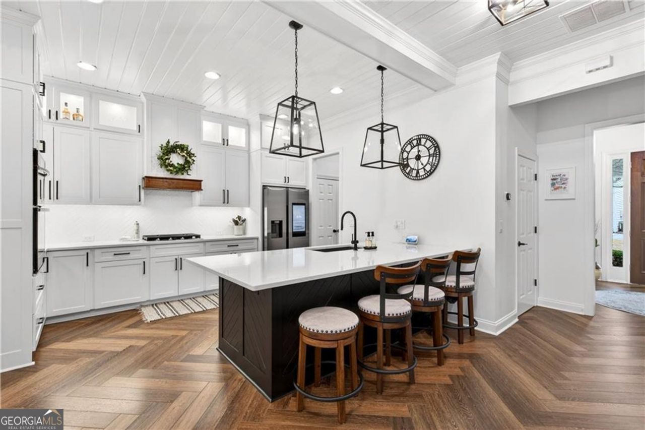 **COMING SOON** Welcome to 180 Kendemere Pointe in the gated subdivision of Crabapple Pointe. This home is special! Beautifully renovated from top to bottom, the main level consists of an office, dining room, and open concept kitchen & living room. The kitchen is magnificent, featuring quartz countertops, stainless steel appliances, and new floor-to-ceiling shaker cabinets with custom lighting. The little details, like tongue & groove ceiling trim, custom moldings, herringbone flooring - really elevate the high-end feel and craftsmanship of this property. You will also find just off of the living room a private, fenced-in courtyard perfect to enjoy this upcoming spring weather. The garage has ample space for 2 cars and additional storage and has epoxy-treated floors for a tidy, clean appearance. Upstairs, you will find the primary bedroom and 3 additional guest rooms. The primary suite is oversized with a walk-in closet and gorgeous ensuite bathroom. Don't miss the hidden 3rd floor office! Owners finished the upstairs attic space into a perfect office, playroom, or exercise room. A rare feature in the neighborhood! Crabapple Pointe is gated and has a wonderful community feel. Yard maintenance is included in the quarterly HOA dues. Centrally located to Roswell, Crabapple, and Alpharetta, and located in a fantastic school district, there is so much the 180 Kendemere Pointe has to offer. Schedule your private showing today to see for yourself!
