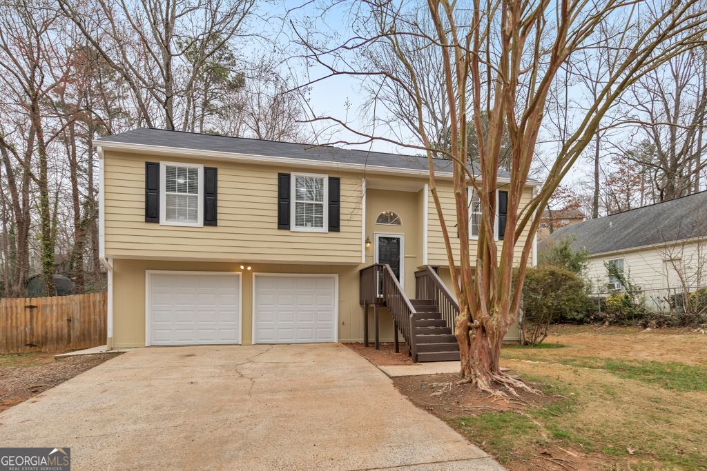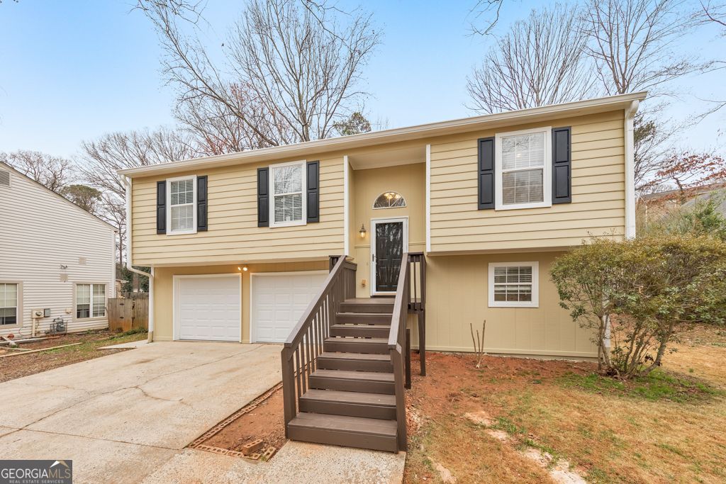 Welcome to this beautiful, fully remodeled 3 bedroom / 2.5 bathroom split-level home in the sought-after Hickory Forest community! Featuring a bright and airy floor plan, this home blends modern updates with comfortable living spaces in a prime location. Step inside to the cozy fireside family room with vaulted ceilings that create an open, inviting feel. The open concept dining area flows seamlessly into the updated kitchen, complete with white cabinetry, stone countertops, stainless steel appliances, and a convenient breakfast bar - perfect for everyday living and entertaining. The spacious main-level primary suite offers a private retreat with an updated ensuite bathroom featuring a sleek walk-in shower. Two generously sized secondary bedrooms are also located on the main level and share a beautifully updated full hall bathroom. Downstairs, the basement provides access to the attached 2-car garage and includes a large bonus room ideal for a den, media room, playroom, home office, or flex space to fit your needs, along with a convenient half bathroom. Enjoy outdoor living with a rear deck off the main level and a covered patio below - both overlooking the spacious, level backyard, perfect for gatherings, pets, or play. All of this in a prime location with easy access to I-75, Downtown Acworth, Downtown Kennesaw, and endless shopping and dining options. This move-in ready home truly has it all!
