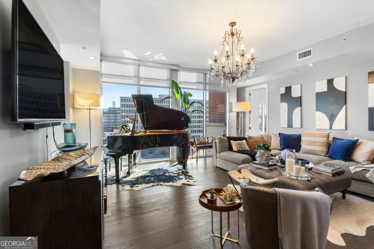 Experience breathtaking Midtown views from this spacious 3BR/3B residence at the prestigious Brookwood. This south-facing home boasts one of the largest floorplans in the building, flooded with natural light through floor-to-ceiling windows that showcase elegant hardwood floors. Step out onto your private balcony to savor morning coffee or evening drinks while taking in the panoramic midtown Atlanta skyline. Luxurious upgrades abound, from designer lighting to custom wall coverings and smart home technology throughout. The gourmet kitchen features Viking stainless-steel appliances, granite countertops, and stylish two-toned cabinets. The owner's suite offers a generous bedroom, walk-in closet, and a spa-like bath with double vanity and separate tub and shower. Enjoy the convenience of a secondary bedroom with a private balcony and en-suite bath, along with a versatile 3rd bedroom/office/den/movie room. The Brookwood, Atlanta's first LEED Certified residential tower, offers an unparalleled lifestyle with top-notch amenities including a fitness center, saltwater pool, outdoor fireplace, billiard room, club room, dog park, and 24/7 concierge service. Located between Midtown and Buckhead, The Brookwood provides easy access to Bobby Jones golf course, the North Side Beltline, shopping, dining, and more. Don't miss this opportunity to live in luxury and convenience at The Brookwood.