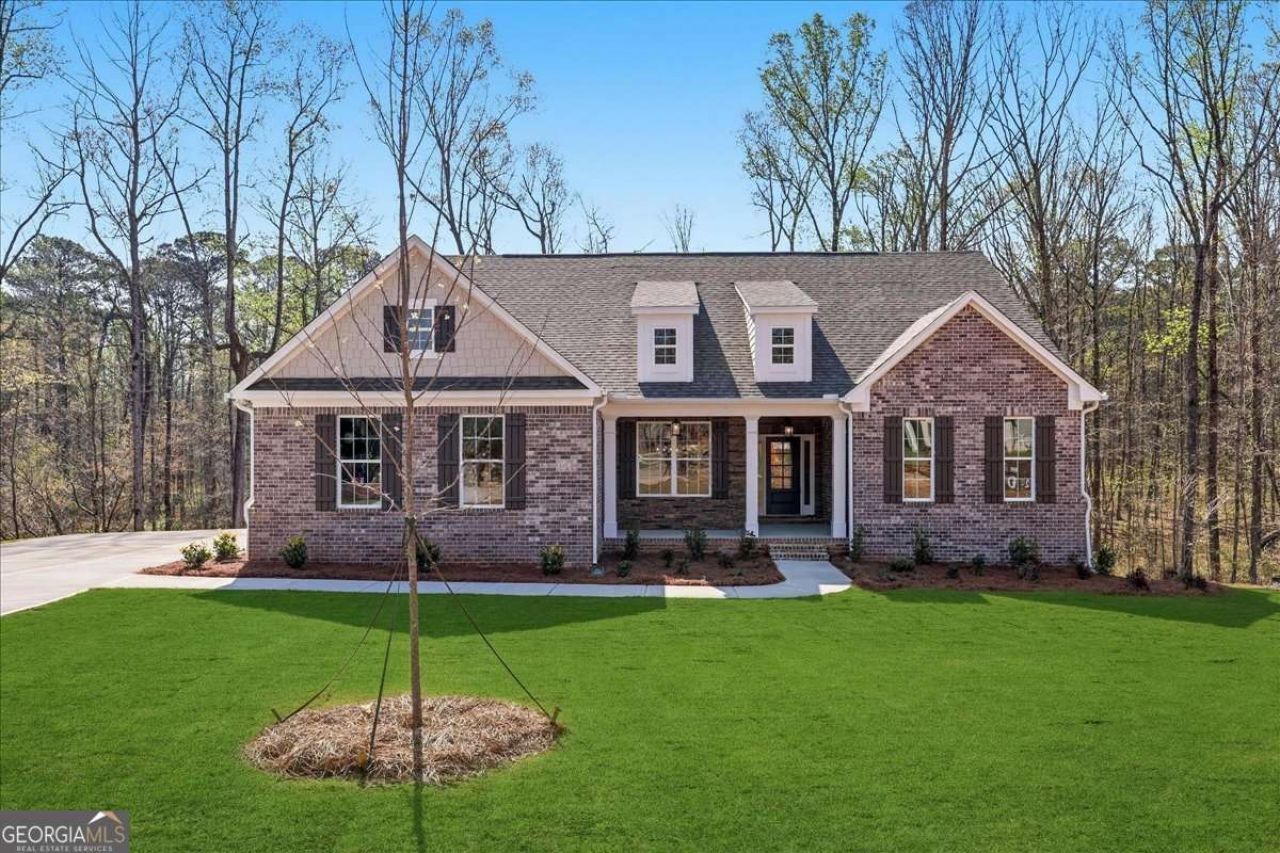 FINAL OPPORTUNITY - ONLY 5 HOMES REMAIN! Beautiful New Construction Home with Primary Suite on Main in the Gated Community of Bradley Gin - Situated on a Stunning 3.81-Acre Estate Lot! Don't Miss Out on This Home's $15,000 Incentive Package!! This beautiful ranch-style home featuring the popular Woodstock floor plan offers the perfect blend of thoughtful design, luxury finishes, and functional living space. Situated on an oversized 3.87-acre estate lot, this property offers exceptional outdoor space and a beautifully flat backyard ideal for a future pool, outdoor living areas, or extended entertaining space. Upon entering the home, you are welcomed by a foyer that opens to a formal dining room featuring upgraded judges paneling and detailed trim work. The spacious living room is anchored by a stunning masonry gas-burning fireplace with a mantle and shiplap accent detail, creating a warm and inviting focal point. The kitchen is designed for both everyday living and entertaining, featuring sprawling quartz countertops, a large island with three pendant lights, and an upgraded gourmet kitchen package that includes a cooktop, built-in microwave, upgraded range hood, and double ovens. A walk-in pantry with shelving provides ample storage. The adjoining breakfast area also showcases upgraded judges paneling and offers a bright, casual dining space with direct access to the covered back porch. Step outside to enjoy the covered porch complete with ceiling fan and lighting, creating the perfect space for outdoor relaxation or entertaining while overlooking the expansive backyard. The main-level primary suite offers a comfortable retreat with large windows that allow natural light to fill the room. The luxurious primary bathroom features full tile flooring, a large walk-in tiled shower, a garden tub with tile surround, double vanities with upgraded hardware, and abundant cabinet space. The suite also includes a spacious walk-in his-and-hers closet. Additional main-level features include a large laundry room with decorative tile flooring, a coat closet, and convenient access from the two-car garage into a utility landing area. Upstairs, upgraded stained oak stair treads with a matching handrail lead to three additional bedrooms. One bedroom includes its own private full bathroom and walk-in closet, creating an ideal guest or private suite. All secondary bedrooms feature large walk-in closets. A hallway closet provides additional storage, and a full bathroom serves the remaining upper-level bedrooms. Built on a slab foundation and positioned on a rare 3.87-acre estate lot with a flat backyard ideal for future outdoor enhancements, this home presents an exceptional opportunity to enjoy new construction living in the secure and desirable gated community of Bradley Gen. Home is currently under construction with an estimated completion in July. Photos included are of another Woodstock floor plan and are provided for representation purposes. Interior and exterior selections may vary.