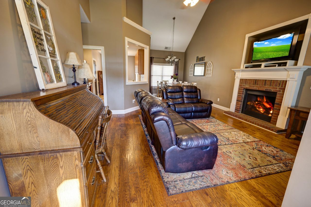 CHARMING CRAFTSMAN WITH IN-LAW SUITE AND FULL-SERVICE SALON SETUP IN POOLSIDE NEIGHBORHOOD! Situated on a LUSHLY LANDSCAPED CORNER LOT, this meticulously designed residence offers the perfect blend of timeless architecture and modern comfort. As you approach, you will be mesmerized by the quintessential Craftsman curb appeal of the facade, with handsome CEMENT SIDING and classic BRICK accents. Guests arrive at the front entry to be greeted into the warm and welcoming atmosphere of the main level footprint. The living room boasts SOARING CEILINGS and a romantic, GAS LOG FIREPLACE, providing a cozy ambiance to snuggle in on those chilly winter eves. EAT-IN KITCHEN features CERAMIC TILE FLOORING, STAINLESS APPLIANCES (including REFRIGERATOR), and handy PANTRY, and opens to a partially-covered PORCH, overlooking the FENCED BACKYARD - a laid-back setting to sip morning brew or host Fall gatherings! A spacious DINING AREA is also in place for more formal meals, and is open to the living room in a flawless flow. The generous OWNERS SUITE provides a peaceful escape, and is equipped with TRAY CEILINGS and WALK-IN CLOSET, as well as a spa-like ensuite with DUAL VANITY, JETTED TUB, and SEPARATE SHOWER. The secondary bedrooms on the main level are also generously-sized, and share a hall bath with tub/shower combo. The LOWER LEVEL could be utilized as a future IN-LAW SUITE. Currently in place is a 2ND LIVING ROOM with built-ins; FULL-SERVICE SALON AREA; BEDROOM; FULL BATH with stall shower; LARGE GAME ROOM; and STORAGE ROOM. (The lower level is not serviced by HVAC at the present time.) Located in a PICTURESQUE NEIGHBORHOOD with COMMUNITY POOL and PLAYGROUND in ADAIRSVILLE SCHOOL DISTRICT, convenient to I-75, schools, shopping, dining, and more! Welcome Home to 21 Barnsley Forest.