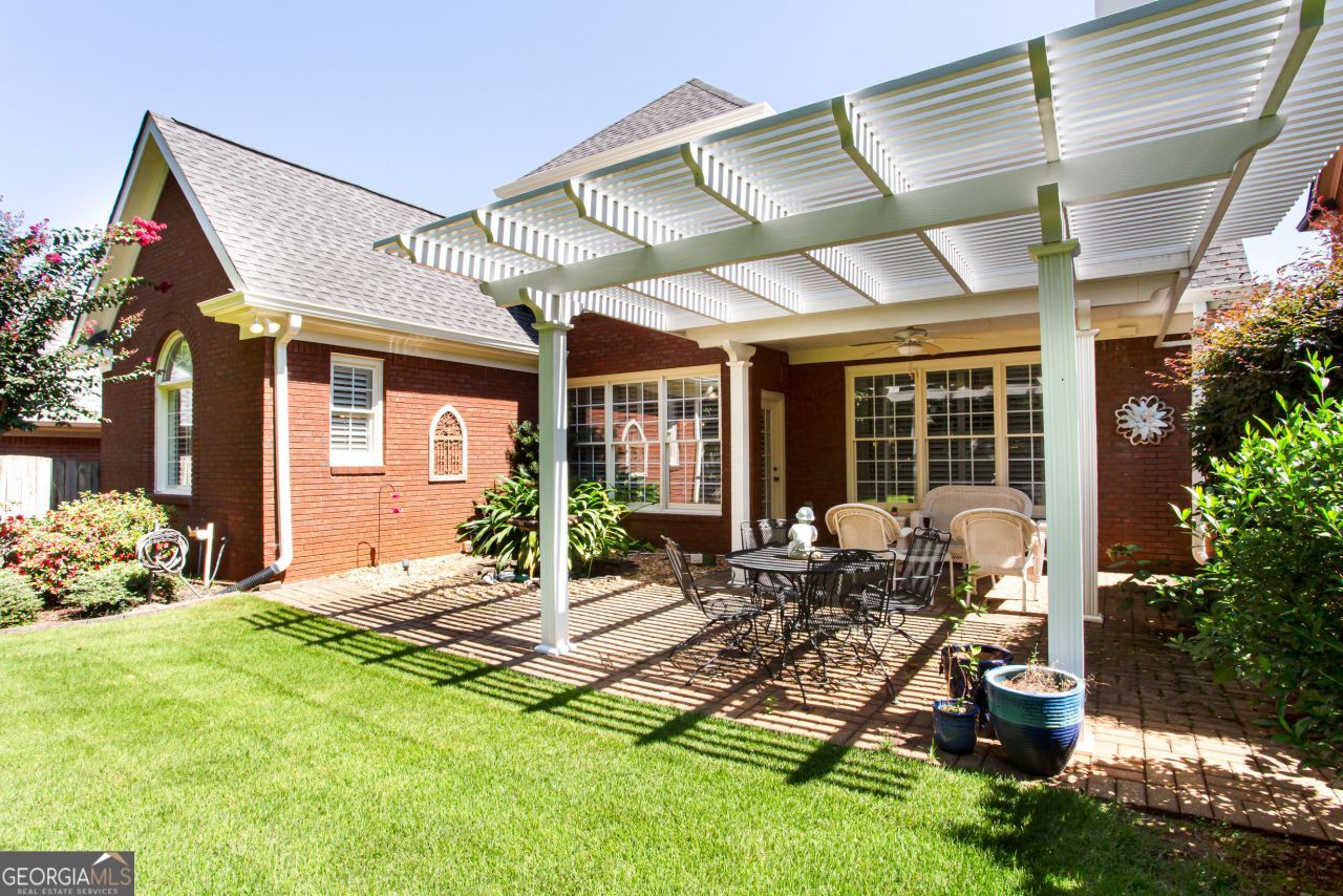 Fresh Look & New Price - Don't Miss This Opportunity! Discover this stunning 4-sided brick home located in one of the area's most sought-after gated communities and top-rated school districts- now offered at a recently improved price! This beautiful home blends timeless charm with thoughtful modern upgrades for elevated everyday living. The main-level primary suite is a peaceful retreat featuring dual closets, a relaxing jacuzzi tub, and a separate shower. The elegant family room showcases a hand-painted fireplace, creating a warm gathering space, while the gourmet kitchen shines with granite countertops, custom cabinetry, and upscale finishes throughout. Upstairs, you'll find two oversized bedrooms connected by a shared bath with private sink areas for added convenience, plus a large bonus room perfect for a fourth bedroom, home office, or recreation space. Plantation shutters and designer touches elevate every corner of the home. Step outside to your private backyard oasis-a level, beautifully landscaped retreat complete with a pergola, serene pond, and covered patio, ideal for entertaining or unwinding in peace. All of this just minutes from top schools, shopping, dining, and the hospital- this refreshed listing with a new price is the opportunity buyers have been waiting for!
