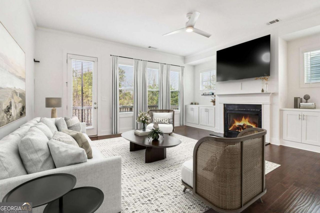 End-unit townhome combining style, space, and an unbeatable location-minutes to Downtown Atlanta, Smyrna, and the Cobb Galleria. Bright, open-concept living with hardwood floors and recessed lighting throughout. Spacious family room with gas fireplace flows to a kitchen with granite countertops, stainless steel appliances, convection cooking, and a large center island-perfect for entertaining. Upstairs primary suite offers a generous walk-in closet and en-suite bath with oversized double shower. Upper-level laundry for added convenience. Appliances stay with the home! Enjoy enhanced privacy as an end unit plus a back deck for outdoor dining or relaxing. Directly behind the property is a dog park, and a community trail connects you to Whittier Mill Park. Community amenities include a pool, tennis courts, clubhouse with fitness center, playground, and walking paths. A rare opportunity to own in one of Atlanta's most connected and desirable locations!