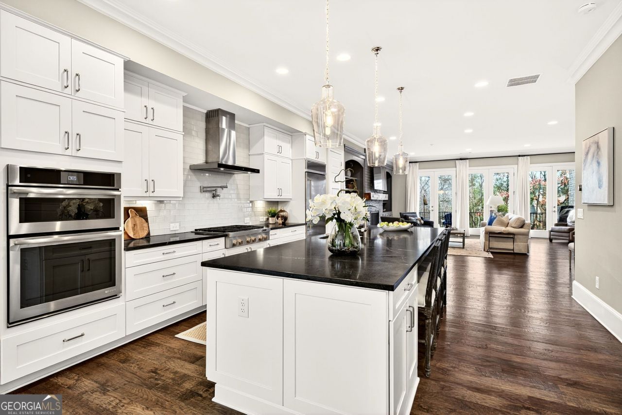Prime Brookhaven Location! This exceptional end-unit townhome in Arrington Place offers elevator access to all three floors and is nestled within a peaceful, low-traffic community. An expansive private patio and rear deck showcase stunning skyline views of Buckhead, creating the perfect balance of privacy and outdoor living. Thoughtfully designed with both luxury and convenience in mind, this residence delivers outstanding comfort and style. Ideally located near I-85, CHOA, Phipps Plaza, Lenox Mall, premier dining, and just minutes from downtown Atlanta, the setting is truly unbeatable. Tucked away in the back corner of the community, this home offers a rare combination of privacy, breathtaking views, and refined upgrades that distinguish it from the rest. The sparkling evening lights of Buckhead provide an unmatched backdrop, while the community pool, just steps away, offers a refreshing retreat right outside your door. Inside, the main level impresses with soaring 10-foot ceilings and rich hardwood flooring throughout. The home has been thoughtfully updated with fresh interior and exterior paint, new lighting, and beautifully refinished staircases featuring oak handrails and iron balusters. The fireplace serves as a warm focal point, enhanced by a custom cedar mantel and painted brick surround. Additional highlights include an oversized laundry room with expansive cabinetry, a luxurious primary suite with a custom closet and spa-like bath, and a beautifully appointed kitchen featuring a large center island, updated kitchen and bath hardware, and custom built-in bookcases that add both charm and functionality. Unique front-door-access parking provides added convenience for deliveries and guest drop-off. Move-in ready and exceptionally located, this home offers one of the most private settings and most captivating views in Arrington Place.