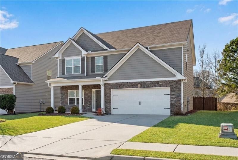 Jackson EMC Energy Star/Right Choice Certified Home! Conveniently located with easy access to I-85, Shopping around Top Golf and the Mall of Georgia. MOVE-IN Ready immaculate condition. Inviting rocking chair front porch leads to the hardwood foyer and flex room which can be used as a formal dining room or study. Neutral paint colors throughout. The cozy fireside family room views the eat-in island kitchen with plenty of cabinets and stainless steel appliances including FRIDGE. Tile laundry on main - WASHER/DRYER included. Updated lighting throughout. The spacious primary suite with double tray ceiling features sitting area, His & Her walk-in closets, tile bath, double vanities, garden tub and a separate shower. Secondary bedrooms are spacious with vaulted ceilings and share a hall bathroom with double vanity. New carpeting with plush padding in all bedrooms (2025), New hardwood stairs & flooring (2nd floor hallway) (2024). Recently updated: New HVAC system (2023), new exterior paint (2022), new interior paint (2023), new dishwasher (2021), new fence & stain (2023), french drain installed (2024), new water heater (2022), new microwave, oven/range, refrigerator, washer and dryer (2025)