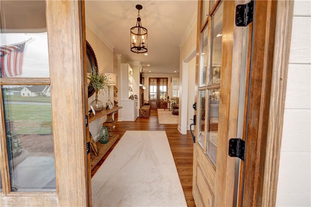 EXQUISITE, CUSTOM-BUILT PERFECTION WITH COLOSSAL SHOP IN PASTORAL SONORAVILLE SETTING! This better-than-brand-new architectural masterpiece with fabulously-flowing floor plan is situated on 6.9+/- ACRES of serene countryside, while still being convenient to I-75 and all in-town amenities. On the way to the estate, guests are greeted by impressive neighboring manors in the bucolic vicinity. Pull in the drive to the exquisite residence boasting handsome, alabaster HARDY BOARD siding contrasted by onyx windows, and beautiful BRICK ACCENTS. The ROCKING CHAIR FRONT PORCH overlooks adjacent pastures, and opens to the ONE-LEVEL footprint, where no detail was missed in the planning and construction. Step inside to be welcomed into the LARGE GREETING FOYER, which provides adequate wall space for displaying heirloomed art. A gas log FIREPLACE serves as the focal point of the LIVING ROOM, and is flanked by illuminated built-ins. A BRICK ACCENT WALL with arched entry into the GOURMET KITCHEN, affording TOP-OF-THE-LINE appointments: 5-burner gas stove with pot filler and towering vent hood; Walk-in pantry; Custom cabinetry with glass-front display shelving; and Quartz counters. The massive PREP ISLAND doubles as a breakfast bar, and the sink area is met with a picture window overlooking the back grounds. A FORMAL DINING ROOM is in place for elegant entertaining, featuring an alcove to house a buffet. The MAGAZINE-WORTHY OWNER'S RETREAT is privately tucked away on the west wing of the residence and is reminiscent of 5-STAR, LUXURY ACCOMMODATIONS. Its ensuite includes: Dual vanities; Stand-alone soaking tub; Separate tile shower; and Private water closet. It opens to the WALK-IN WARDROBE with custom closet system, and leads to the MASSIVE LAUNDRY ROOM with quartz folding counter, which is also accessible from the hallway. The foyer entry from the garage accommodates enough space for a small home office setup, and leads to a POWDER ROOM for guest use. The secondary bedrooms, positioned on the opposite end of the home, each feature a walk-in closet with closet system, and share a hall bath with dual, custom vanities and soaker depth tub/shower combo. Both the living room and the wing of the owner's retreat open to the most magnificent OUTDOOR LIVING SPACE. A COVERED BACK PORCH with STAMPED CONCRETE and TONGUE-AND-GROOVE ceilings provides the ultimate venue for outdoor entertaining. A designated grilling station is in place, and pavers lead the way to the FIREPIT area, providing an intimate setting for late-night conversations with views of the nostalgic corral on the property. The 50x60' +/- SHOP has its on entrance, and even its own address off of Pendley Road. Equipped with 3 roll-up bays (10Wx14H in center, and 10Hx10W on sides)+/-, 2 - 50amp plugs, Separate electric meter, and FULL BATHROOM, the possibilities for this structure are endless. It currently houses a 36' fifth wheel in the center. The attached SHED (16x60' +/-) is set up on one end for for future enclosure for lawn tool storage, and on the other end for a MASSIVE PARTY PAVILION. This ONE-OF-A-KIND property provides the ultimate destination for a MINI-FARM/HOMESTEAD in a CONVENIENT LOCATION, practically equidistant from Chattanooga and Atlanta. Additional Highlights: Tankless water heater; Spray foam insulation in attic for efficient energy; 2 Trane HVAC systems; 9' ceilings throughout; PLANTATION SHUTTERS throughout (except garage); LVP flooring throughout, with tile in the l