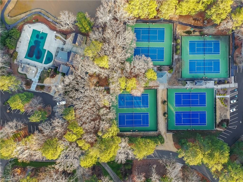 Welcome home to a spacious and versatile residence in Chimney Springs, one of East Cobb's most established and sought-after communities. This 5-bedroom, 3.5-bathroom home features a functional floor plan designed for both comfortable daily living and entertaining. The main level is centered around a large family room with a fireplace, a wall of sliding glass doors that invite natural light and provide a seamless transition to the outdoors. The large kitchen with an oversized island is equipped with a water filtration system, granite countertops, a gas cooktop, a built-in oven with a warming drawer, and a dedicated wine bar complete with a wine fridge and storage. Adjacent to the kitchen, the open-concept dining room opens to a fully-screened sunroom and an expansive upper deck overlooking a lush, level backyard. The primary suite is located on the main floor (Master on Main) for easy accessibility, featuring a fireplace and a bathroom with a double vanity and charming barn doors. Upstairs, two additional bedrooms share a Jack-and-Jill bathroom, complemented by a cozy balcony sitting area. The finished terrace level functions as a complete in-law or guest suite, offering a kitchenette with a stovetop and full fridge, a large entertainment room, two bedrooms, and a renovated full bathroom. Outside, the private, fully-fenced backyard includes a newly installed fire pit area and a storage shed, while the terrace-level outdoor living area features a relaxing hot tub. A tranquil koi pond sits at the front of the home, alongside a convenient third parking space. The lifestyle at Chimney Springs is unmatched, offering a golf-cart-friendly environment with a rich social calendar and premier amenities: a clubhouse, swimming pool, eight tennis courts, pickleball, basketball, a playground, and a lake with miles of walking trails. Located in the heart of East Cobb, this home is minutes from premier shopping and dining at The Avenues and Historic Downtown Roswell. The property is zoned for the award-winning school district of Pope High, Hightower Trail Middle, and Tritt Elementary. Here, you will experience the best of East Cobb living with an exceptional combination of charm, convenience, and natural beauty. Welcome home!