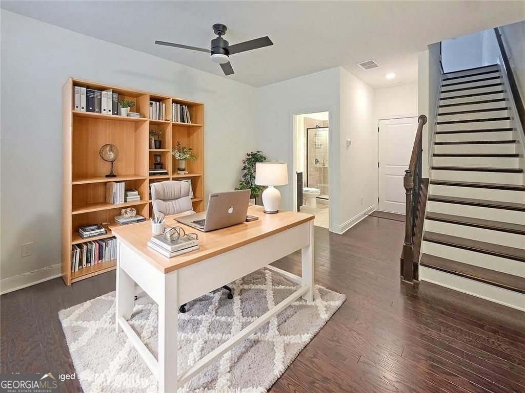 || BUILT IN 2023 - LIKE NEW || || PRIVATE GATED COMMUNITY || || WALKING & BIKING FRIENDLY || || EXPANSIVE ATLANTA & BUCKHEAD VIEWS || || HARDWOOD FLOORS || || WALK-IN PANTRY || || ENERGY STAR QUALIFIED APPLIANCES || || ENERGY-EFFICIENT DOUBLE-PANE WINDOWS || || COMMUNITY CENTER WITH GYM, POOL & YOGA || ** What You'll See ** Sunlight pours through the front windows thanks to the ideal EAST-WEST ORIENTATION, framing EXPANSIVE VIEWS of Atlanta and Buckhead that shift beautifully from morning glow to evening light. The first-level OPEN, FLEXIBLE FLOOR PLAN features ALL HARDWOOD FLOORING and a FULL BATH, creating a bright, modern space that adapts easily to entertaining, working from home, or hosting guests. HIGH CEILINGS and an OPEN-CONCEPT MAIN LIVING AREA enhance the airy feel, while crisp finishes and a thoughtfully LANDSCAPED LOT reflect the home's 2023 construction. ** What You'll Hear ** Mornings begin quietly in this PRIVATE GATED COMMUNITY, with soft neighborhood sounds and a peaceful rhythm that carries into the evening. Step outside and you'll notice how WALKING- AND BIKING-FRIENDLY the community feels-neighbors chatting near the COMMUNITY FIREPLACE or the gentle splash from the LARGE SWIMMING POOL adding just the right amount of life. ** What You'll Feel ** You'll feel the comfort and efficiency of ENERGY-EFFICIENT DOUBLE-PANE WINDOWS and ENERGY STAR QUALIFIED APPLIANCES, keeping the home comfortable year-round. Smart storage solutions-including ADDITIONAL SHELVING IN ALL CLOSETS-keep everything organized, while the WALK-IN PANTRY and spacious layout make daily living effortless and uncluttered. ** What You'll Experience ** Life here is about ease and intention: morning workouts in the WELL-EQUIPPED FITNESS CENTER, yoga in the COMMUNITY YOGA AREA, and relaxing poolside afternoons. Enjoy a PRIVATE BALCONY OFF THE LIVING ROOM-perfect for morning coffee, evening cocktails, or growing flowers and a small herb garden. The GARAGE FEATURES UNIQUE HIGH CEILINGS, offering excellent extra storage potential or the possibility for a car lift, plus GENEROUS GUEST PARKING out front. Modern, low-maintenance living with a true sense of community. HOA dues are paid monthly at $285.