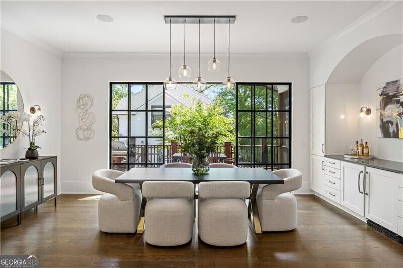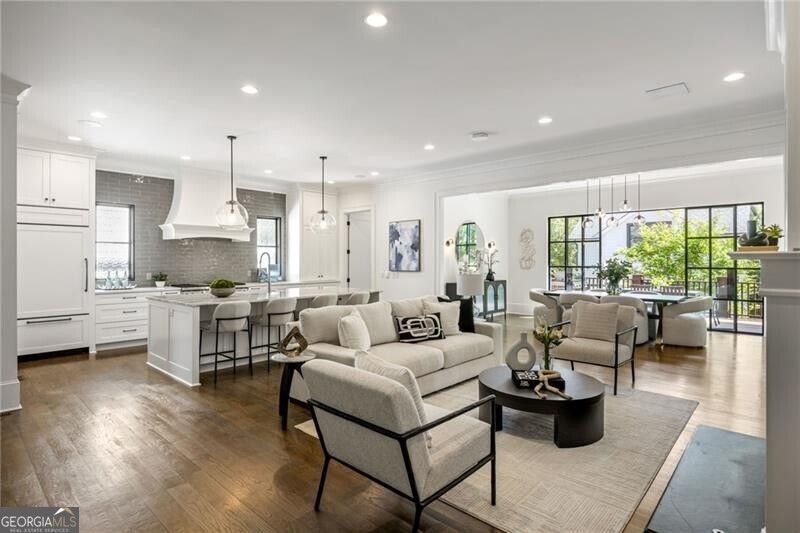 Custom-built modern farmhouse ideally situated on one of Ashford Park's most desirable streets, with convenient access to the shops and restaurants of Dresden. A light-filled open floor plan centers around an inviting gourmet kitchen outfitted with premium appliances, including a Wolf six-burner range with built-in griddle, Sub-Zero French door refrigerator, and Bosch dishwasher. Designed for effortless entertaining, the elegant dining room features a serving bar with beverage refrigerator and dual iron doors open to a grilling deck and screened porch overlooking the private backyard. The adjoining family room is anchored by a wood-burning fireplace flanked by custom built-ins. The main-level primary suite features a spa-inspired marble bath with a freestanding soaking tub, frameless glass shower, and a spacious walk-in closet. A private entrance to the screened porch creates a serene retreat, ideal for morning coffee or evening relaxation. A private office provides flexibility as a workspace or playroom. Additional main-level highlights include a laundry room with mudroom-style built-ins and a powder room. Upstairs offers four generously sized bedrooms, two en-suite baths, and one Jack-and-Jill bath. The detached two-car garage includes a beautifully appointed studio apartment above, complete with a mini kitchen, fireplace, walk-in closet, washer/dryer, and full bath-ideal for guests, an au pair, or a private office. Designed with entertaining in mind, the terrace level offers a custom bar with beverage refrigerator, a projection TV with a 120-inch screen, a dedicated fitness room, and a full bath. French doors open to a covered porch and professionally turfed backyard, complete with a bocce court and a tranquil meditation pond with cascading waterfall. Surrounded by the best of Brookhaven including Haven Restaurant, Valenza, Vero, Dixie Q, Verde Taqueria, Honeysuckle Gelato, Brookhaven Wines, Marguerites on Dresden, and more. This home is packed with premium upgrades, including a 10 kW solar panel system paired with 20 kW of battery storage, providing reliable backup power during outages. Enjoy unparalleled walkability to Dresden's shops and restaurants, including the vibrant Parkside on Dresden development with ConFab Kitchen & Bar, Honeysuckle Gelato, MIRAE, Caf Vend me, and an outdoor dining area which has become a popular gathering spot for the neighborhood! On Dresden, you will also find local favorites that include One Sushi, Dixie Q, Haven Restaurant, Valenza, Vero and Verde Taqueria.