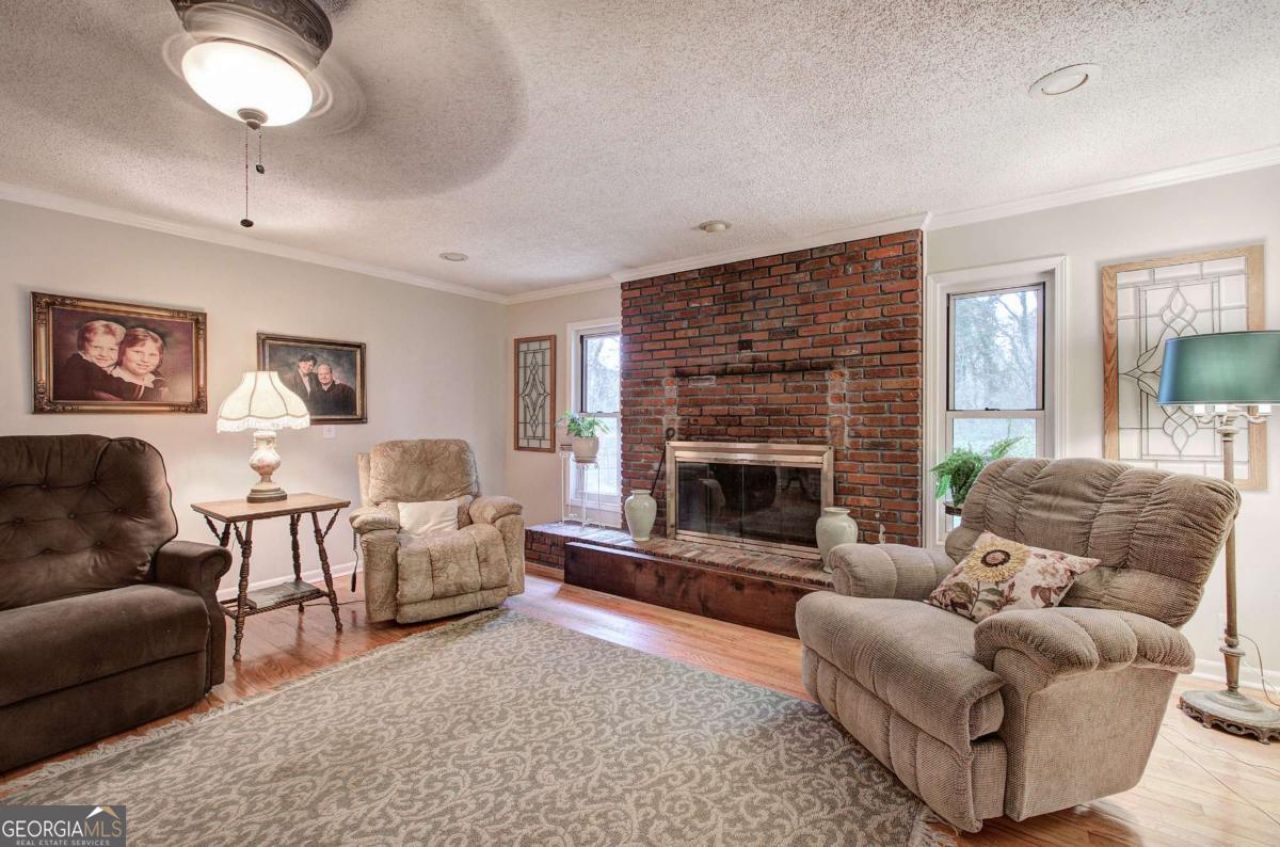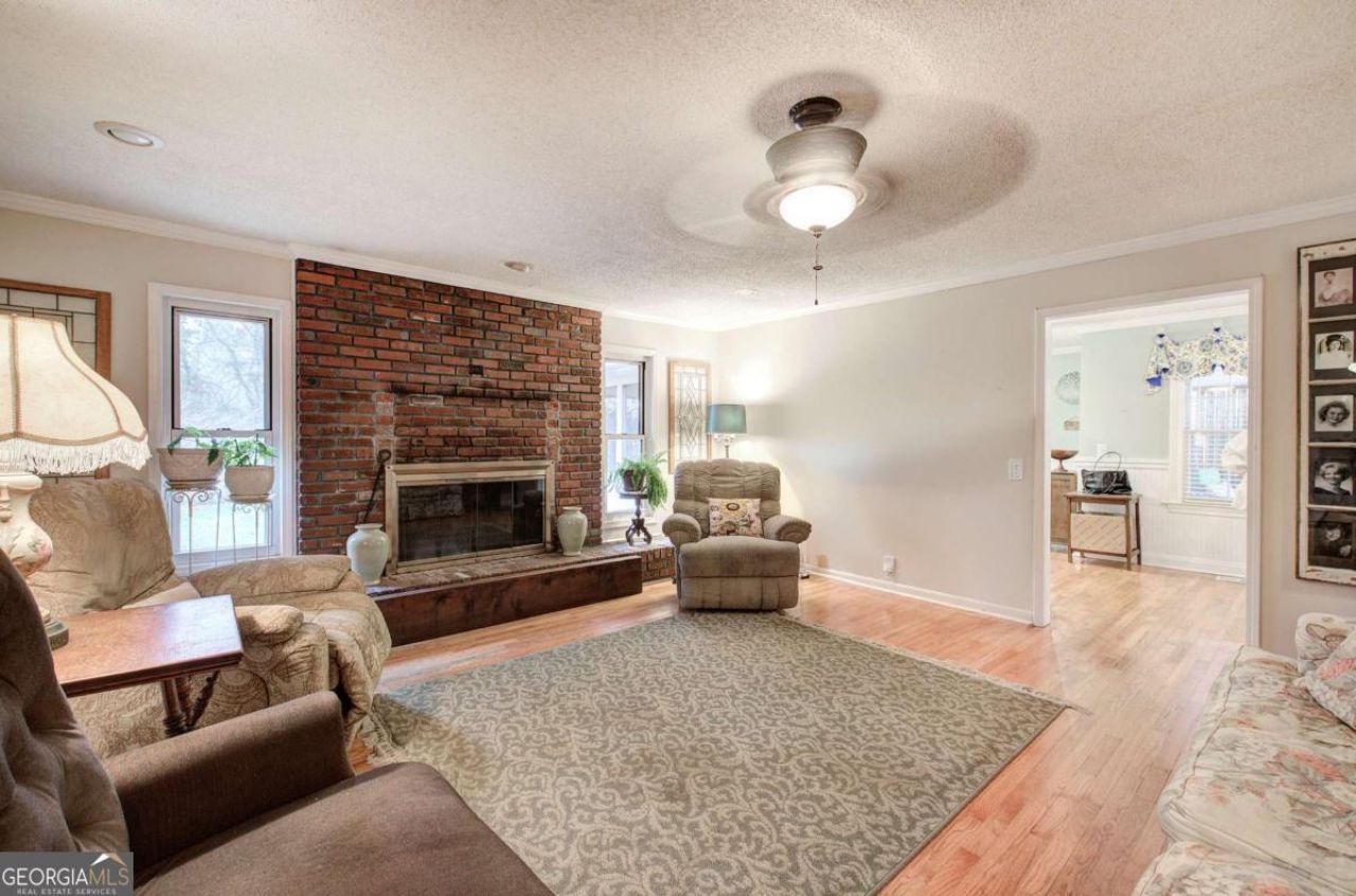 Charming 4-Sided Brick Ranch in the City with Original Hardwood Floors! This well-maintained 3 bedroom, 2 bath home offers classic charm and comfortable living throughout. The spacious eat-in kitchen features a nearly new refrigerator, dishwasher, garbage disposal and clothes dryer providing both convenience and functionality. A large dining room offers flexible use and could easily serve as a formal living room or entertaining space. The main living room features a cozy brick wood-burning fireplace and elegant crown molding that continues throughout the home. The primary bedroom includes a newly updated walk-in handicap-accessible shower, a new vanity and custom closets for excellent storage. Both secondary bedrooms also feature custom closets and all three feature new carpeting. The secondary bathroom offers a double vanity with a separate toilet and tub area for added privacy and convenience. An extra-large laundry room provides abundant storage and can easily function as a pantry. Just beyond the laundry area, you'll find a 16x28 screened porch overlooking the spacious backyard with privacy fencing-perfect for relaxing or entertaining. Additional storage is available in the metal outbuilding and the storage room attached to the double carport. Start your mornings with coffee on the welcoming front porch surrounded by a beautifully landscaped yard filled with azaleas, camellia roses and other flowering plants.