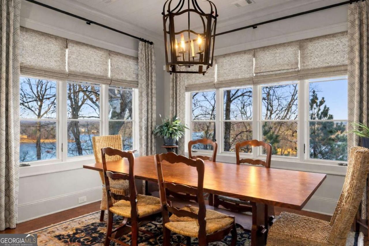 Behind the gates of High Pointe - one of Lake Lanier's most private and coveted enclaves - a rare opportunity has returned to market. Fewer than 20 luxury residences call this community home, and only a select few include a deeded covered boat slip at the community dock, and this one does. The stone-clad exterior opens to a home crafted for those who live lake life well without announcement. Shiplap ceilings with exposed beams, rich hardwood floors, arched built-ins, and a hearth built from historic south Georgia brick anchor a living room where French doors open directly to year-round lake vistas. Inside and outside exist here in constant conversation. The gourmet kitchen is organized around a substantial custom butcher-block island, with custom cabinetry, designer granite surfaces, conversational buffet, and traditional wet bar and beverage concierge. The adjoining dining space looks directly over the lake - a view so present it becomes part of every meal. The primary suite wakes to lake and sky each morning, with a Carrara marble spa bath and an impressive wardrobe with custom built-ins and accessory island. The private study - shiplap-walled, lantern-lit, bay-windowed - is among the most distinguished home offices you'll find at any price. The main-level covered rear porch with its stone fireplace and travertine tile is a full outdoor living room, with the lake shimmering below. The terrace level expands the home into a complete entertainment suite - second den, wet bar kitchenette, two ensuite bedrooms, home gym, and second full porch. Watch deer move through the tree line at dusk or ospreys skim the surface at dawn - this is a home where nature performs daily. The deeded covered boat slip is a priceless amenity - putting all of Lake Lanier at your doorstep without the burden of private waterfront maintenance. High Pointe on Lake Lanier. Gated. Exclusive. Rarely available.