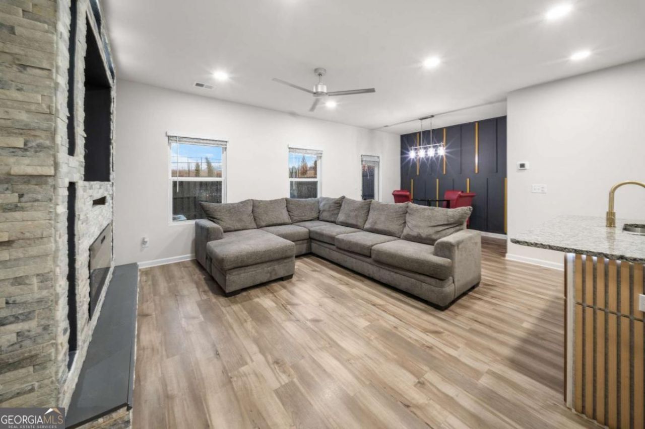 Welcome to 32 Huntley Trace - a beautifully maintained 2022-built townhome offering modern style, functional design, and low-maintenance living in the heart of Hoschton. This 3-bedroom, 2.5-bath home features a bright open-concept main level designed for both everyday comfort and effortless entertaining. The kitchen is equipped with granite countertops, stainless steel appliances, ample cabinet space, and a spacious island that flows seamlessly into the dining and living areas. A standout feature of this home is the custom stone electric fireplace, creating a warm focal point and adding character and sophistication to the main living space. Upstairs, the oversized primary suite offers a private retreat complete with double vanities and a generous walk-in closet. Two additional bedrooms provide flexibility for guests, family, or a home office. The conveniently located upstairs laundry adds everyday practicality. Enjoy your private outdoor patio space, perfect for relaxing evenings or weekend gatherings. The two-car garage provides ample parking and storage. The community offers resort-style amenities including a pool and cabana, and is conveniently located near shopping, dining, schools, and I-85 for easy commuting. Move-in ready and thoughtfully upgraded, this home blends modern construction with timeless comfort. Schedule your private showing today.