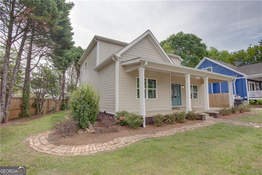 Beautiful new construction located in the highly sought-after Egan Park community. This stunning home welcomes you with a charming rocking-chair front porch and an inviting, light-filled interior. The spacious open floor plan seamlessly connects the living and dining areas, highlighted by abundant natural light and beautiful flooring throughout. The chef's kitchen is a true showstopper, featuring a large island, ample cabinetry, and a huge walk-in pantry, perfect for both everyday living and entertaining. Just off the kitchen, the keeping room with fireplace creates a warm and comfortable gathering space. A generously sized bedroom on the main level offers a private en-suite bath, ideal for guests or a home office. Upstairs, you'll find two large secondary bedrooms connected by a Jack-and-Jill bath, along with a luxurious owner's suite complete with his-and-hers closets and a spa-like bathroom. The owner's bath boasts a double vanity, wet room with soaking tub, and abundant storage. Conveniently located near the airport, major highways, Woodward Academy, Delta, and Porsche, this exceptional home offers modern living in one of College Park's most desirable neighborhoods.