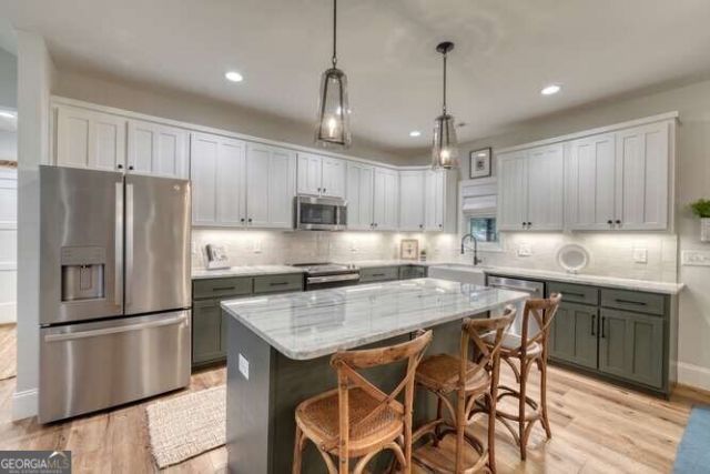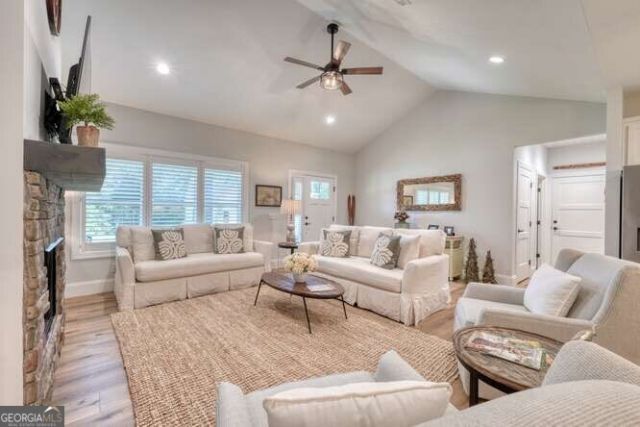 Pride of ownership beams from this gorgeous like-new home offering true one-level living in one of Blairsville's well-established upscale neighborhoods with gentle paved roads that are perfect for walking. This exceptionally maintained 3 bedroom, 2 bath custom-built slab home features a desirable split-bedroom floor plan, open living and dining area, high ceilings, and a light, bright, airy feel that makes you feel right at home the moment you walk in. The chef's kitchen is beautifully appointed with custom cabinetry, a large center island, upgraded granite countertops, stainless steel appliances, a farm sink, designer lighting, and easy flow to the dining area and screened patio. The living room is warm and inviting with a stunning stone gas log fireplace, while luxury vinyl flooring runs throughout for easy care and style. The generous primary suite offers a touch of character with a board and batten accent wall, upgraded granite, tile shower, walk-in closet, and a relaxing retreat feel. Throughout the home, custom window shutters add timeless style, charm, and privacy. A fabulous mudroom with built-in cabinetry and folding counter adds everyday function, while the 2-car garage with level entrance and concrete driveway provide excellent convenience and extra parking. Outside, the lush landscaping, hardscape rock accents, private backyard, front porch, party deck, hot tub, and storage shed create the perfect setting for enjoying all four seasons in Southern magazine style. The low-maintenance Hardi-board exterior combined with gutter guards offers ease of upkeep and peace of mind, allowing you to spend more time enjoying your home and less time maintaining it. Located just minutes from Lake Nottely and downtown Blairsville for shopping, dining, and medical, this move-in ready home truly has it all. Enjoy the best of Union County living with easy access to the Appalachian Trail, Vogel State Park, local vineyards, and Lake Nottely!