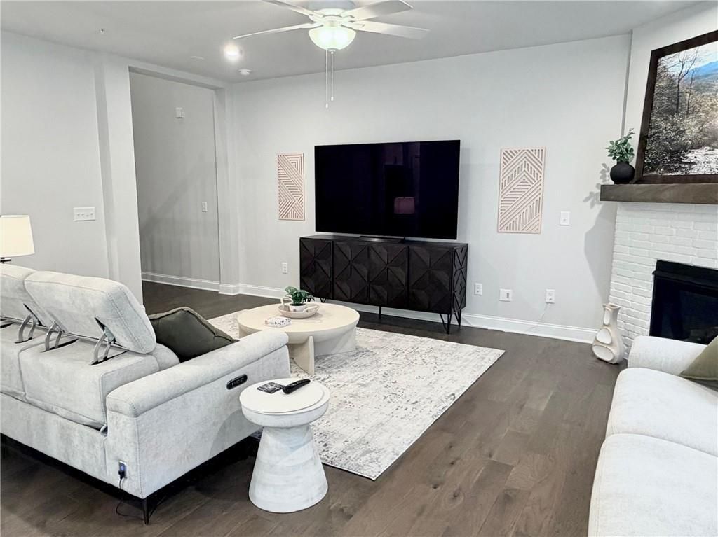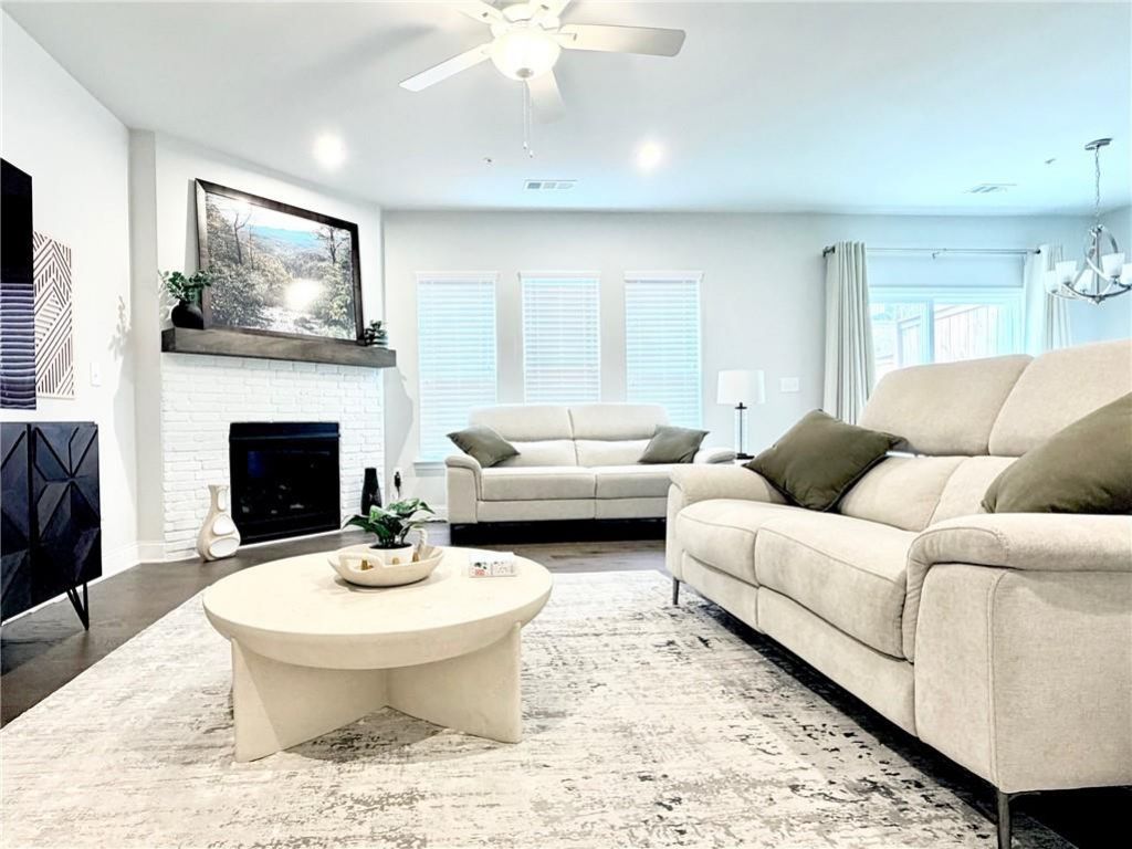 *Price improvement and seller is highly motivated* Located in the highly desirable city of Woodstock, and within 10 minutes of all the shops, dining, parks, and entertainment in downtown Woodstock, is a stunning 3 bedroom, 2.5 bath townhome with 2,019 square feet that combines modern finishes with spacious rooms. From the moment you step inside, you'll notice that from the exquisite hardwoods, to the high ceilings, natural lighting, and iron-railings, this home screams luxury. The main floor features an open layout that allows for an abundance of natural light. The living room features a gas burning fireplace with a gorgeous mantle that provides a cozy space and low maintenance. The kitchen includes quartz countertops, white cabinetry, Whirlpool stainless steel appliances, an oversized island, upgraded kitchen hardware, and a clear view to the living room. As you walk in the front door, a conveniently located half bathroom is close-by. Next to the kitchen, a door leading to a spacious two-car garage with beautiful industrial grade polyurethane flooring awaits. In the backyard, enjoy the privacy of a fully-fenced in yard and patio perfect for grilling out and relaxing with family and friends. As you head upstairs in this home, the primary bedroom features an expansive walk-in closet designed for maximum storage, double vanity with upgraded faucets, filtered shower head, and a walk-in shower. Two additional bedrooms and a full bath provide additional space for family and guests, or can even become your work-from-home office gem. Enjoy the ultimate convenience of an upstairs laundry room that includes a Whirlpool washer and dryer-no more lugging baskets up and down stairs, just effortless access right where you need it. The seller has put close to $20K in upgrades and is one of the few homes in this community carpet-free. The Aldyn community includes a neighborhood swimming pool, sidewalks, streetlights, walking trails, dog walking trails and station, and multiple common areas for gathering with friends and neighbors. Best of all, the location is walkable to Target, BJ's, Starbucks, restaurants and other conveniences. Lowe's and Home Depot are only about 5 minutes by car. This turn-key, original owner home is immaculate and very clean throughout. It has been well maintained and is practically a brand new home without the waiting time of a new construction. Don't take my word for it, come check it out for yourself. Located right off HWY 75 & HWY 92, 575 Expressway to Marietta, Atlanta city limits and the Atlanta Airport.