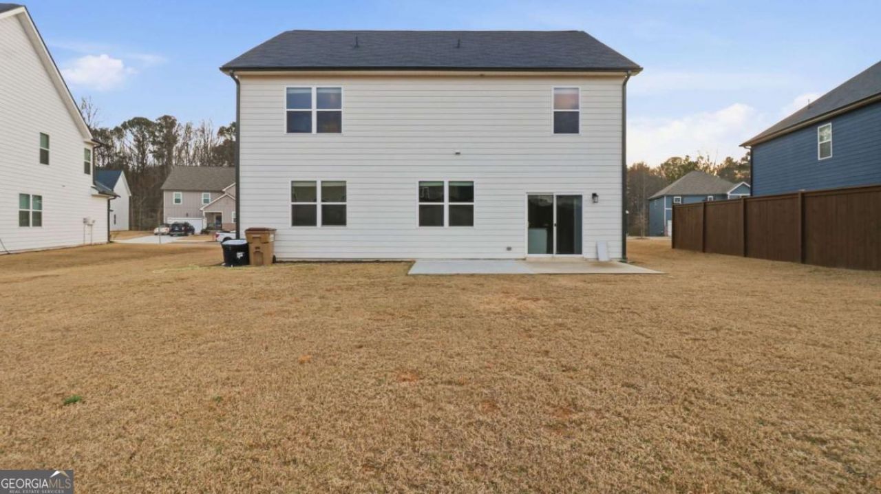 Welcome to this beautifully maintained home in the desirable Dawson Grove community, ideally situated in a quiet setting with peaceful wooded surroundings that offer both privacy and tranquility. Built less than a year ago, this home blends modern design with comfortable living spaces and thoughtful upgrades throughout. Upon entry, you are greeted by a welcoming foyer and durable luxury vinyl plank flooring that extends across the main level, complemented by an elegant wood-tread staircase. Just off the foyer, two generously sized secondary bedrooms share a well-appointed full bathroom, creating an ideal layout for guests, family members, or flexible workspace needs. The home opens into a bright and spacious open-concept living area designed for everyday living and entertaining. The family room serves as the centerpiece, flowing seamlessly into the dining area and kitchen. The kitchen features white cabinetry, granite countertops, stainless steel appliances, a large sink, breakfast bar seating, and a walk-in pantry providing ample storage. A wall of windows across the rear of the home fills the space with natural light and overlooks the private backyard with serene wooded views. Upstairs, a versatile loft offers additional living space perfect for a media room, home office, or playroom. The owner's suite is positioned for privacy and features a spacious layout with a spa-inspired bathroom including a double vanity, soaking tub, separate shower, private water closet, and a large walk-in closet. Two additional bedrooms, a full bathroom with dual-function shower/tub space, and a conveniently located laundry room complete the upper level. Dawson Grove is a sidewalk-lined community with amenities including a neighborhood pool and cabana, and it offers convenient access to a direct walking path to Blacks Mill Elementary School. The community borders a preserved conservation area, enhancing the natural beauty of the surroundings. Located just minutes from GA-400, North Georgia Premium Outlets, shopping, dining, parks, and local attractions, this home provides both convenience and lifestyle in one exceptional location.