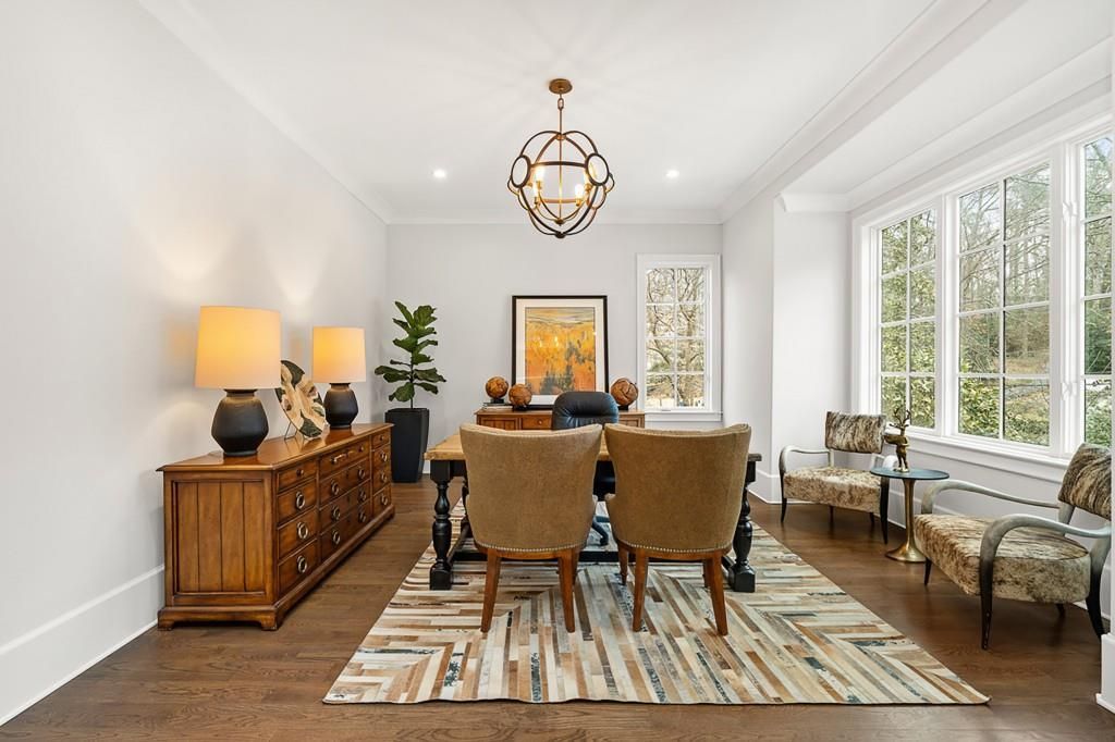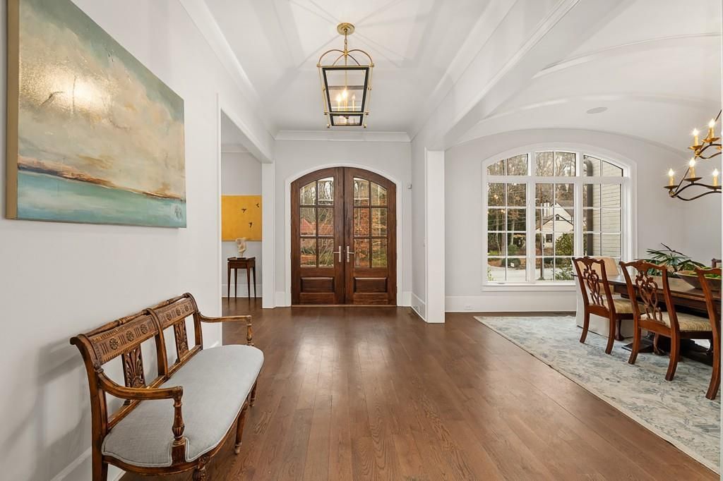 Timeless Elegance in Historic Brookhaven; this spectacular estate offers a rare blend of secluded luxury and urban convenience. Situated on a lush, one-acre lot, the property is a private sanctuary defined by manicured landscaping, a mature tree barrier, and the enchanting presence of a resident family of barred owls all while being minutes from the world-class shopping and dining of Phipps Plaza and Lenox Mall. The Main Level is the epitome of sophisticated living. The open-concept floor plan is designed for seamless transitions and effortless entertaining. At its heart lies a true chef's kitchen, anchored by a massive 10-foot island, a striking copper hood, and a 48-inch Wolf cooktop. The culinary experience is elevated by a butler's pantry featuring glass shelving, an ice maker, and a dedicated wine fridge. The Dining Room allows for formal entertaining distinguished by a dramatic barrel ceiling. The Primary Suite is located on the main level and is a retreat featuring vaulted antique beam ceilings a spa-like full marble bath with a deep jetted tub and a massive walk-in closet with a custom center island. Upper stairs boost true Comfort and Scale. The second floor provides generous accommodations for family and guests alike. Four oversized bedrooms each feature:Private en-suite bathrooms each with gracious custom walk-in closets. The convenience of a secondary laundry room located on this level as well. The terrace level is a destination of its own, fully equipped for long-term guests or recreation. It includes:A full kitchenette with a fridge, microwave, dishwasher, and ice maker. An additional bedroom and full bath. There is living room area with plenty of space for gaming tables. There is a dedicated exercise room and abundant storage. On the terrace level Your four-legged family members are pampered with a custom dog room that leads directly to a private outside run. The interior flows naturally to the outdoors via full accordion doors that open from the kitchen to an expansive covered loggia. This outdoor living room is outfitted with a fireplace, fridge, and grill, alongside a separate dining area. The flat backyard is a masterpiece of hardscapes and greenery with a saltwater pool that is 8 feet deep with an integrated hot tub. There is a dedicated area fire pit area for gathering and evening entertaining The expansive side yard offers endless possibilities for private gardens, a baseball diamond, or custom golfing amenities.