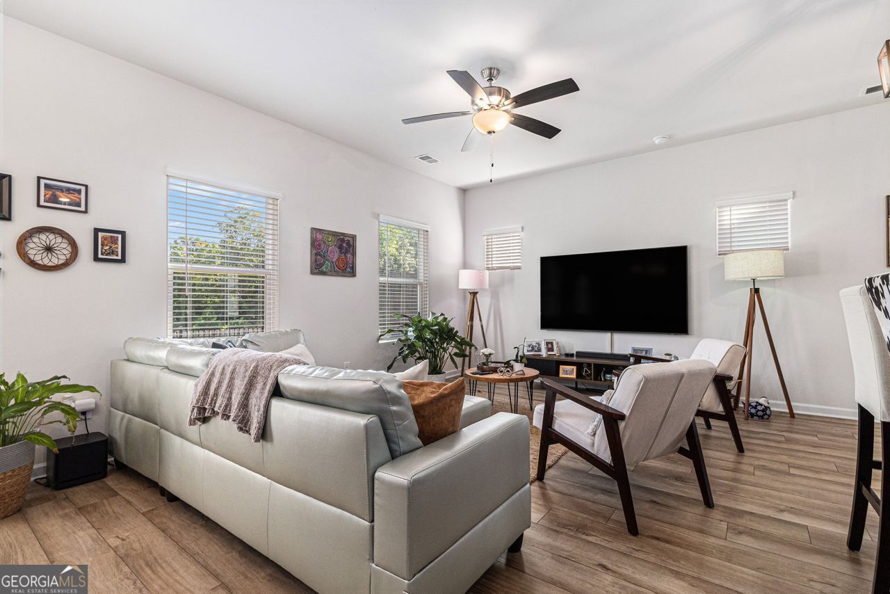 END UNIT. QUICK CLOSE. SMART HOME READY. MODERN APPLIANCES. Looking for a home that has it all? This end unit townhome features 3 bedrooms and 2.5 bathrooms, designed with both style and function in mind. Throughout the home, you'll find Smart Home Technology that allows you to control door locks, security cameras, digital doorbells, and so much more, all with a tap of your smartphone. From the moment you pull up, the curb appeal stands out. As soon as you step inside, you'll notice the natural light pouring through every room. The open-concept main level is perfect for entertaining. The kitchen is a standout with its LG ThinQ refrigerator, matching stainless steel appliances, granite countertops, and a spacious pantry for all of your culinary needs. Hardwood floors flow into the spacious living area, which leads to a private backyard, ideal for relaxing or hosting friends. Upstairs, the expansive primary suite boasts tray ceilings, an upgraded custom closet, and a spa-like en suite bath where you can unwind at the end of the day. Two additional bedrooms and a full bathroom complete the upper level. Located in the heart of Oakwood, only 20 Minutes away from the Mall of GA, and with quick access to I-985 and Lake Lanier, this home makes commuting and weekend getaways easy.
