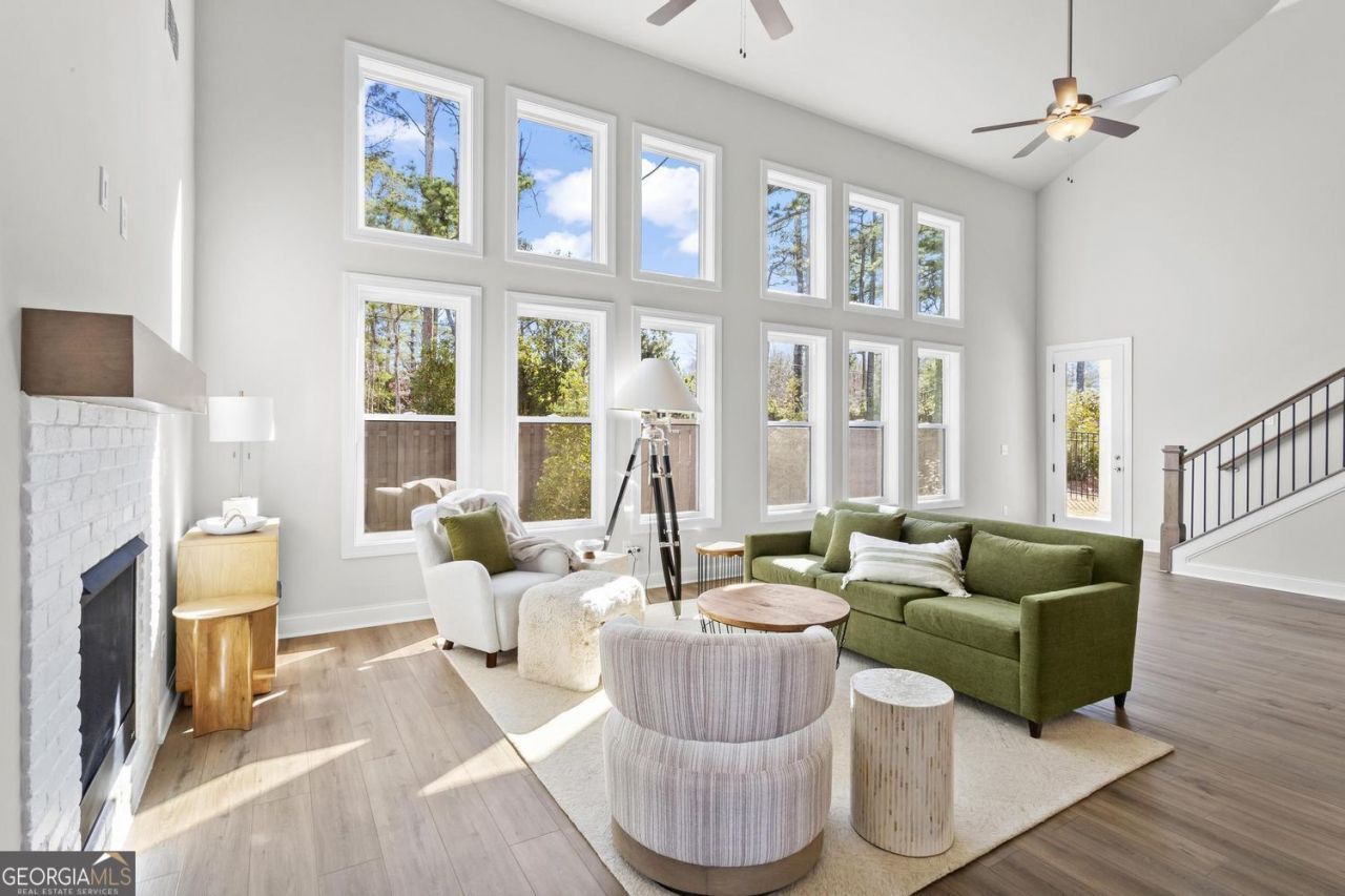 Move-in ready and available now-no waiting months for new construction. Welcome to an exceptional opportunity in the highly sought-after Promenade at Sawnee Village in Forsyth County, a gated 55+ active adult community in the heart of Cumming, Georgia. Situated on one of the most desirable lots in the neighborhood, this beautifully designed Lawrence II floor plan offers a rare combination of privacy, thoughtful design, and effortless living. The home backs to a private street with a wooded setting, creating a peaceful backyard retreat that is hard to find in this community. A charming front porch sets the tone for the warm and inviting interior. Inside, the home showcases an open and airy layout with a dramatic two-story family room with an enormous wall of windows allowing light to flood in, centered around a cozy gas fireplace. The spacious kitchen is designed for both everyday living and entertaining, featuring an oversized island, abundant cabinetry, and a bright breakfast area that flows seamlessly into the living space. The main-level owner's suite offers a serene retreat, complete with a spa-inspired bath featuring dual vanities, a zero-entry shower, freestanding soaking tub, and a generous walk-in closet with direct access to the laundry room for ultimate convenience. Also on the main level is are two bedrooms or one to be used as a private office, perfect for visiting family or working from home. Step outside to the covered rear patio, an ideal space for morning coffee or evening gatherings while enjoying the privacy of the backyard. Even better, the HOA maintains the landscaping, allowing you to enjoy a true low-maintenance lifestyle. Upstairs, the home continues to impress with; a spacious secondary bedroom and full bath, a separate media room/large open loft area perfect for movie nights or game days, hobbies, reading, or additional living space and a walk-in attic offering abundant storage for seasonal items and more. Living in the Promenade at Sawnee Village subdivision means enjoying a vibrant and social lifestyle with exceptional amenities including; a beautiful clubhouse with catering kitchen, fitness center, resort-style pool with lounge areas and fire pits, pickleball courts, dog park, and secure gated community living The location is equally impressive-just minutes from Cumming City Center, shopping and dining at The Marketplace, GA-400 for easy commuting, and the recreational beauty of Lake Lanier. This is your opportunity to skip the construction timeline and step directly into luxury, convenience, and active adult living at its finest. Schedule your private tour today and discover why 491 Pearl Street is one of the best opportunities in Sawnee Village!