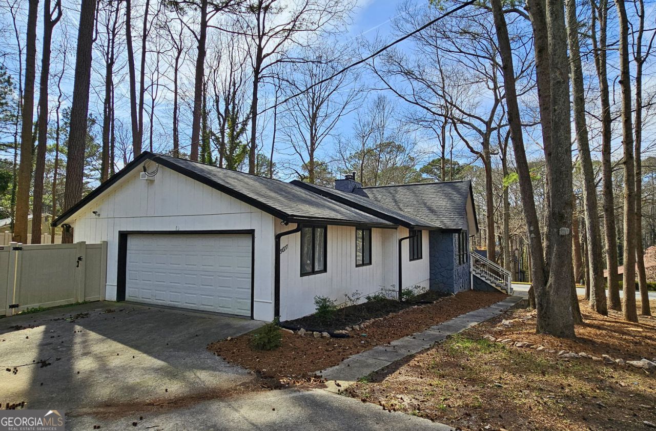 Beautifully updated and thoughtfully designed, this Stone Mountain home blends modern style with everyday comfort in a convenient location close to schools, shopping, and Wade Walker Park. The open-concept main level welcomes you with vaulted ceilings, expansive windows that flood the space with natural light, and a striking stone fireplace that anchors the living area. The refreshed kitchen features timeless white shaker cabinetry, marble countertops, and stainless steel appliances, offering both functionality and classic appeal. An adjacent dining area opens directly onto the rear deck, creating an easy indoor-outdoor flow ideal for entertaining or unwinding. The private, fenced backyard provides a peaceful setting for gatherings, gardening, or play. The primary suite serves as a serene retreat with an updated en suite bath showcasing dual vanities and a marble-tiled walk-in shower with a rainfall showerhead. Additional highlights include a two-car garage, an extended driveway for ample parking, and the added benefit of no HOA, giving you the freedom to enjoy your property without extra fees or restrictions. Easy drive to Stone Mountain Village and Park. With its flexible layout, stylish upgrades, and inviting outdoor space, this home offers a rare combination of comfort, convenience, and value in one of Stone Mountain's most accessible locations.