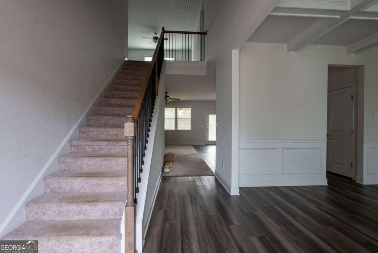 Welcome to 5257 Shorthorn Way in Powder Springs, GA - a beautiful 4-beds/4-baths home tucked away in a quiet cul-de-sac with easy access to city amenities. This thoughtfully designed layout features one bedroom and full bath on the main floor, perfect for guests or multigenerational living, with the remaining bedrooms located upstairs along with a spacious second-floor laundry room for added convenience. The upper level also boasts an expansive loft ideal for a media room, play space, or home office. The primary suite showcases an elegant tray ceiling and a luxurious ensuite complete with a dual-sink vanity, huge walk-in closet, glass-enclosed shower with full tile surround, and a separate soaking tub for a true retreat experience. Enjoy outdoor living from the welcoming front porch or unwind on the covered back porch overlooking the backyard. Combining generous living spaces, functional design, and a peaceful neighborhood setting, this home offers comfort, flexibility, and move-in-ready appeal.