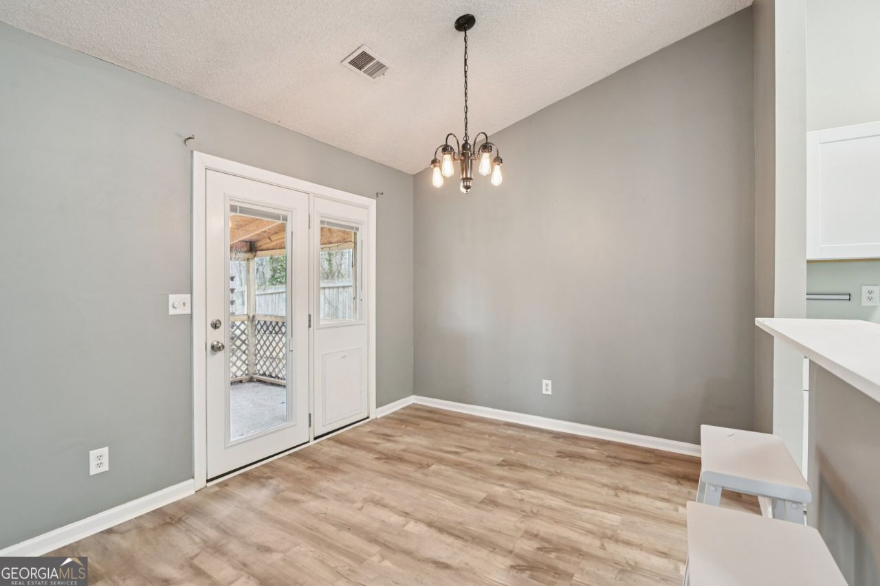 Welcome home to this charming and well-maintained 3-bedroom, 2-bath ranch in desirable Powder Springs! From the moment you arrive, the inviting front porch with classic porch swing sets the tone for comfort and relaxation. Inside, you'll find new luxury vinyl plank flooring throughout, offering both style and durability. The spacious family room features a cozy fireplace and beautiful skylight that fills the space with natural light, creating a warm and welcoming atmosphere.The galley kitchen is thoughtfully designed with a breakfast bar, eat-in breakfast nook, and dedicated breakfast area - perfect for everyday living and easy entertaining. Just off the main living space, step onto the screened back porch and enjoy peaceful mornings or unwind in the evenings overlooking the huge, level backyard.The oversized primary suite provides plenty of room to retreat and recharge, complete with a separate shower and soaking tub. Both bathrooms have been updated with modern vanities for a fresh, updated look. Outside, the large, level backyard offers endless possibilities - play, garden, entertain - plus a spacious shed for additional storage. If you're looking for one-level living, updated flooring, generous space, and a backyard you'll actually use, this one checks the boxes.