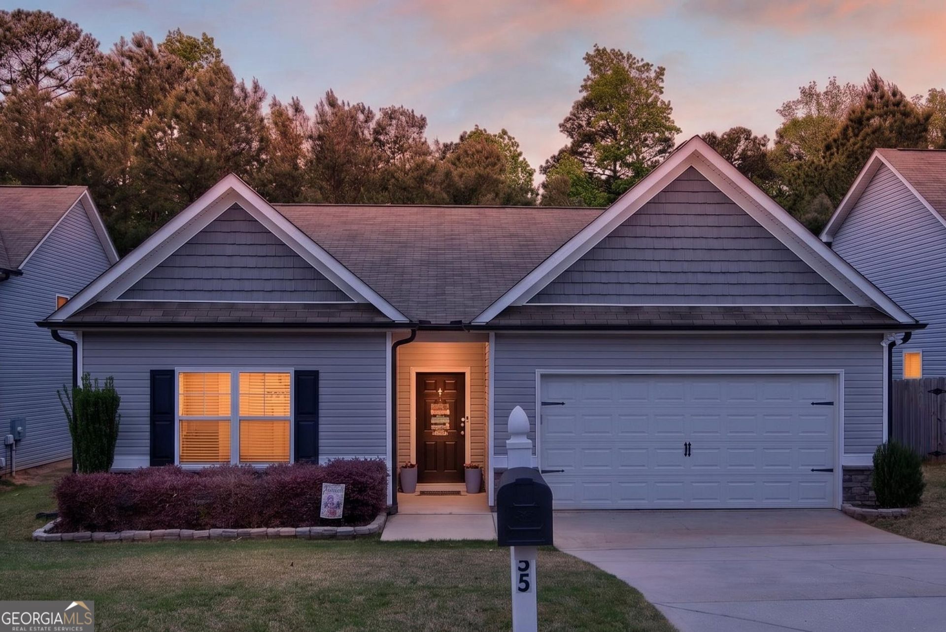 Welcome to Summerhill, where this well-maintained one-owner home features a modern, open floor plan designed for comfortable everyday living. As you enter the foyer, you're greeted by board and batten accent walls, adding character and a welcoming first impression. The family room features a vaulted ceiling, enhancing the open and airy feel as it flows seamlessly into the kitchen. The kitchen is designed for everyday living and entertaining, complete with stainless steel appliances, a central island perfect for casual dining, and a dining area with room for friends and family. Just off the kitchen, you'll find a convenient laundry room, along with a drop zone as you enter from the garage for added organization. The owner's suite offers a tray ceiling, a spacious walk-in closet, and a private bath with double vanities, providing comfort and convenience. Two additional bedrooms and a full bath complete the home, ideal for guests, family, or a home office. Step outside to a patio overlooking a private, wooded setting, with fully sodded front and back yards adding curb appeal. Beautiful laminate flooring runs throughout the home, adding durability and a cohesive finish. This home offers quick access to Interstate 85 for convenient north or south travel and is just minutes from Newnan or LaGrange shopping and restaurants. Located in the Coweta County School District, this home offers comfort, convenience, and a great location.