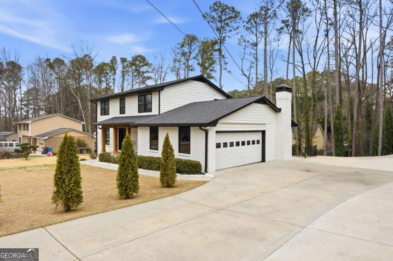 Prepare to be captivated by this masterfully remodeled four-sided brick sanctuary, a seamless fusion of traditional architecture and contemporary designer finishes perfectly situated on a sprawling half-acre lot in the heart of Lilburn. This isn't just a move-in-ready home; it is an architectural statement featuring four oversized bedrooms and three full, spa-inspired bathrooms detailed with custom tile work, sleek matte black fixtures, and illuminated LED mirrors. From the moment you pull up the rare, expansive flat driveway to the side-entry garage, the home's striking white exterior with natural wood accents and a welcoming covered porch sets the stage for the luxury within. Inside, an open-concept flow reveals a chef's kitchen adorned with premium stone countertops, an elegant tile backsplash, and high-end stainless steel appliances, all transitioning into light-filled living spaces highlighted by chic wood-plank ceilings and crown molding. The versatile floor plan includes a sought-after main-floor bedroom, while the upper-level primary suite serves as a true retreat with its custom wood accent wall and deep walk-in closet. Adding unparalleled value to this incredible offering, most of the high-quality furniture remains with the home at no extra cost to the buyer, allowing for a truly seamless transition into your new lifestyle. Beyond the interior, a massive tiered deck overlooks a manicured, level backyard with professional-grade landscaping and mature trees, creating an ultimate private oasis for year-round entertaining. The full daylight basement with interior and exterior entry offers a blank canvas for a luxury guest suite, home cinema, or private gym. Strategically located with rapid access to I-85, you are mere minutes from the vibrant dining and shopping hubs of Gwinnett County and the urban energy of Atlanta, offering the perfect balance of suburban tranquility and metropolitan convenience.