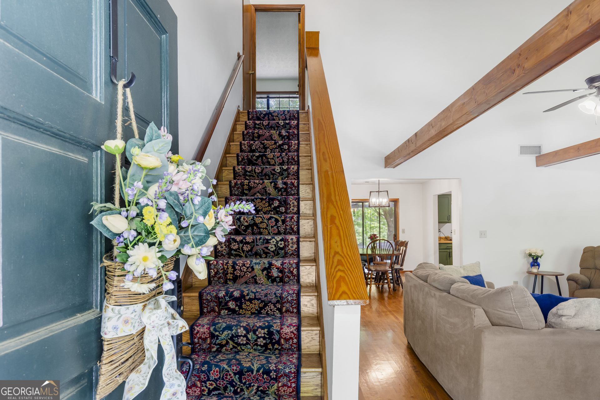 With charming cottage aesthetic, you'll be ready to call this new listing home. Stepping inside, you're greeted by a grand living space defined by high ceilings, exposed decorative beams, and rich hardwood floors, all centered around a stone masonry fireplace. Two generous secondary bedrooms and a full guest bath are tucked conveniently off the main area. The layout flows effortlessly into a spacious separate dining room-perfect for gatherings-with views of the serene backyard. Adjacent to the dining area is a large, well-appointed kitchen featuring a quaint breakfast nook and a dedicated laundry room. A private third bedroom and a flexible storage space are also located on this level for maximum utility. The entire upper floor is dedicated to the expansive primary suite, a true retreat complete with a private sitting area, a large en-suite bath, and a walk-in closet. The outdoor living is just as impressive perfect for entertain or you private enjoyment. Situated on 1.32 acres, this charming cottage-style home features an inviting rocking-chair front porch. An attached carport with an added storage room in the rear adds the final touch of convenience to this exceptional property.