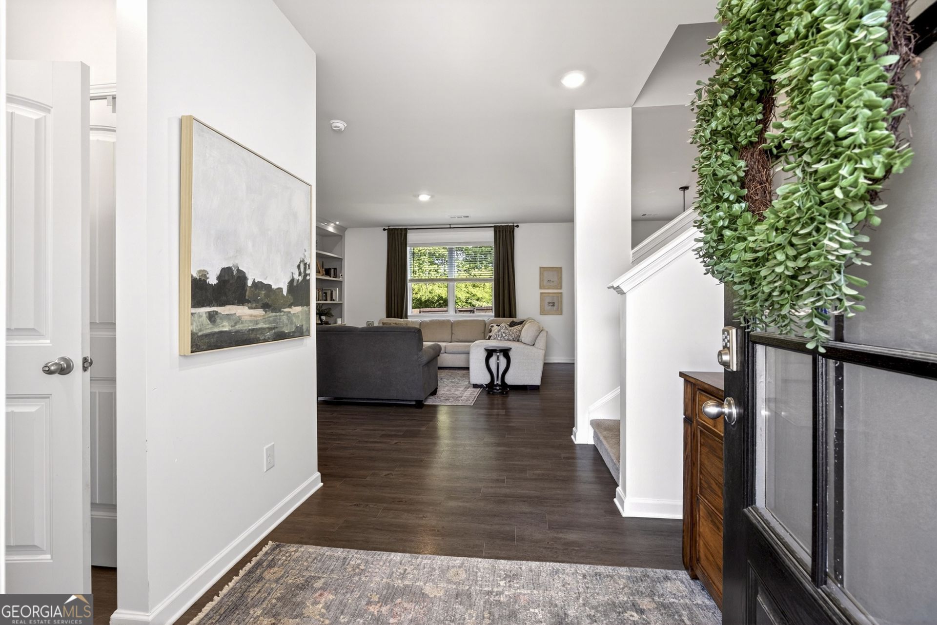 Welcome home to Pendergrass! Lovely two story home located in Walnut Grove. Open floor plan with beautiful custom built in bookcases and upscale window casings. White cabinetry in the kitchen with plenty or cooking space and storage. Kitchen island with seating. Designer powder room will impress! Private back yard backs up to the woods vs another home. Located in a quiet cul-de-sac. Enjoy outdoor grilling, outdoor games or just hanging out listening to the birds. Upstairs you will find the oversized primary with ensuite. Laundry, three ample sized bedrooms, and guest bathroom complete the floor plan. This house is loved and can't wait for new owners! Swim community.