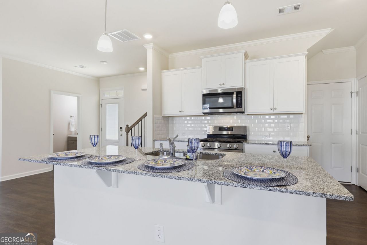 Incredible opportunity in sought after SUMMIT LAKE! LIKE NEW and MOVE IN READY. This beautifully maintained home offers style, comfort and convenience, with easy access to shopping, dining, downtown Flowery Branch, Lake Lanier Islands, I 985 and I 85. The completely open floor plan is perfect every day living and entertaining, ready for you to make it your own. The gourmet kitchen features white cabinetry, a large island for breakfast and gatherings, a gas cooktop, abundant storage, and not ONE but TWO pantries. All Kitchen appliances, including the refrigerator remain with the property. Upstairs you will find 4 bedrooms, along with a conveniently room. Washer and Dryer also remain with the property. The spacious Owner's Suite is you spa like retreat with a soaking tub and separate shower. The secondary bathroom features double sinks, making busy mornings a breeze. Fresh paint has been completed in approximately 95% of the home. Step outside to enjoy the level, fenced backyard and extended concrete patio - perfect for entertaining, birthday parties or relaxing evenings at home. The garage includes hanging bicycle storage - overhead storage AND an electric car charger! LOcated in a swim community and priced to sell, this home truly reflects pride of ownership throughout. Did we mention it is MOVE IN READY!