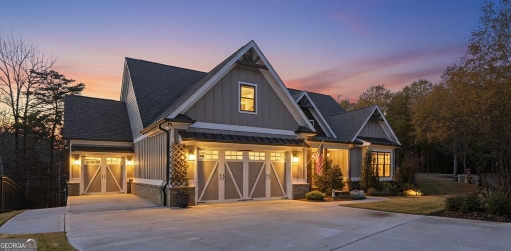 Rare opportunity to own a Boat Slip in Marina Bay! This amazing timeless craftsman-style home feels brand new. Discover the pinnacle of sophisticated lake living in this architectural masterpiece. Built just three years ago and immaculately maintained, this home offers the rare opportunity to own a better-than-new residence in the prestigious Marina Bay community without the wait of construction. Blending timeless Craftsman aesthetics with Modern Farmhouse luxury, this professionally designed move-in-ready retreat features a fully operational elevator, an established landscaped yard, and boat slip D-38 in the private marina. The heart of the home is a culinary showpiece. The chef's kitchen boasts custom cabinetry, convection oven, a spacious walk-in pantry, and a stunning oversized quartz island that serves as the perfect gathering spot. Entertaining flows seamlessly into the casual dining room-complete with a butler's pantry for morning coffee or evening cocktails-and the expansive Great Room. Here, high ceilings with cross beams, a custom stacked-stone fireplace, and floating bookshelves with a built-in workstation create an atmosphere of refined comfort. Glass doors open to the dramatic outdoor living area: a vaulted, floor-to-ceiling screened porch equipped with electronic blinds and a second stacked-stone gas fireplace, making indoor-outdoor living perfect year-round. The main-level Owner's Retreat is designed as a quiet haven. Glass French doors lead to a private deck featuring a built-in sun shield-the perfect spot for a soak in the included hot tub or morning coffee overlooking the lush, fenced grounds. The spa-inspired bath is an indulgence in comfort, featuring his-and-hers vanities, a walk-in shower, and the luxury of heated floors and heated towel racks. The expansive closet offers custom built-in shelving for impeccable organization. The fully finished terrace level is a complete secondary living space, ideal for extended family. It features a family room, a well-appointed mini-kitchen/bar, and two ensuite bedrooms with direct backyard access. A standout feature is the custom guest ensuite, thoughtfully designed with a California King Murphy bed, integrated lighting, and a charging station. A separate Flex Room offers endless possibilities as a hobby room, private office, or she shed / man cave. Practicality meets luxury in the three-car garage, featuring an 40A EV electric vehicle charging station. The third is extra deep, perfect for a golf cart, workshop, or storage. The garages lead into a mudroom with a custom drop zone and direct elevator access. For the lake lifestyle, the massive laundry room includes a sink, cabinetry, and ample space for wet suits and towels after a day of boating. Pet owners will love the dedicated, fenced-in dog run accessible via the main level porch staircase. Marina Bay offers an unparalleled suite of resort-style amenities, including a stunning saltwater pool with cabana, a state-of-the-art fitness center, tennis and pickleball courts, a tot lot, and a magnificent 14,000 sq. ft. clubhouse. The community is active and welcoming, with a full calendar of social activities. HOA $3,200/annually beginning in 2026. A Marina Bay boat slip is included ($95,000 value) with a $500 annual maintenance fee. Imagine a life where you can hop on your golf cart and be at the lake in minutes, enjoy leisurely evening strolls on tree-lined streets, or spend your days at the clubhouse surrounded