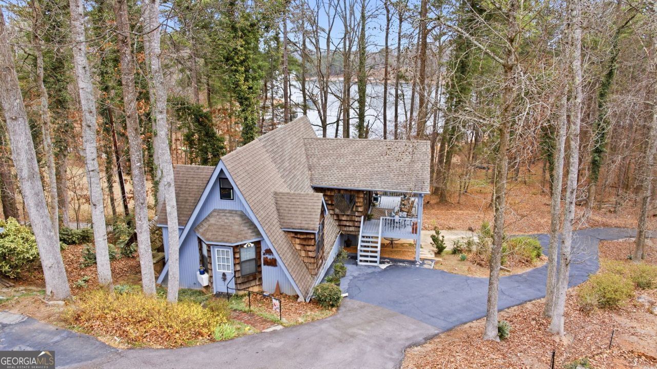 Tucked away in one of the most desirable areas of Lake Lanier's south end, this charming 1968 lake cottage offers the perfect blend of character, lake views, and true waterfront living. Surrounded by mature trees and overlooking deep water, the home captures the relaxed charm that made Lake Lanier famous. Inside, warm wood tones and natural light create an inviting atmosphere throughout the open main living area. The kitchen flows easily into the living space and dining area, while large sliding glass doors lead out to a wraparound porch where you can enjoy peaceful lake views and fresh mountain air. The main level features a comfortable bedroom and full bath, along with a fun sleeping loft above that adds additional sleeping space and storage - perfect for hosting family and friends on weekends at the lake. The walk-out terrace level brings you even closer to the water and includes an updated bedroom and full bath, offering guests privacy and easy access to the shoreline. Just a short stroll from the home sits the covered double-slip dock with an active permit, located in deep water, making boating and lake days effortless year-round. Adding even more flexibility to the property is a separate Accessory Dwelling Unit (ADU). The structure includes a studio space on the lower level and a full apartment above with kitchen and bath, along with a carport. The apartment is currently occupied by a long-term tenant who would love to stay, providing an immediate income opportunity for the next owner. Located in a highly sought-after area of the south end of Lake Lanier, the property offers convenient access to Lanier Islands, Margaritaville, and Legacy Golf Course, along with easy commuting to Atlanta. With no HOA, possible short-term rental potential, and the timeless appeal of a classic lake cottage, this property offers a rare opportunity to enjoy lake life, generate income, or create the ultimate family retreat. Whether you're looking for a weekend escape or a full-time waterfront lifestyle, this special Lake Lanier cottage captures everything people love about life on the lake.