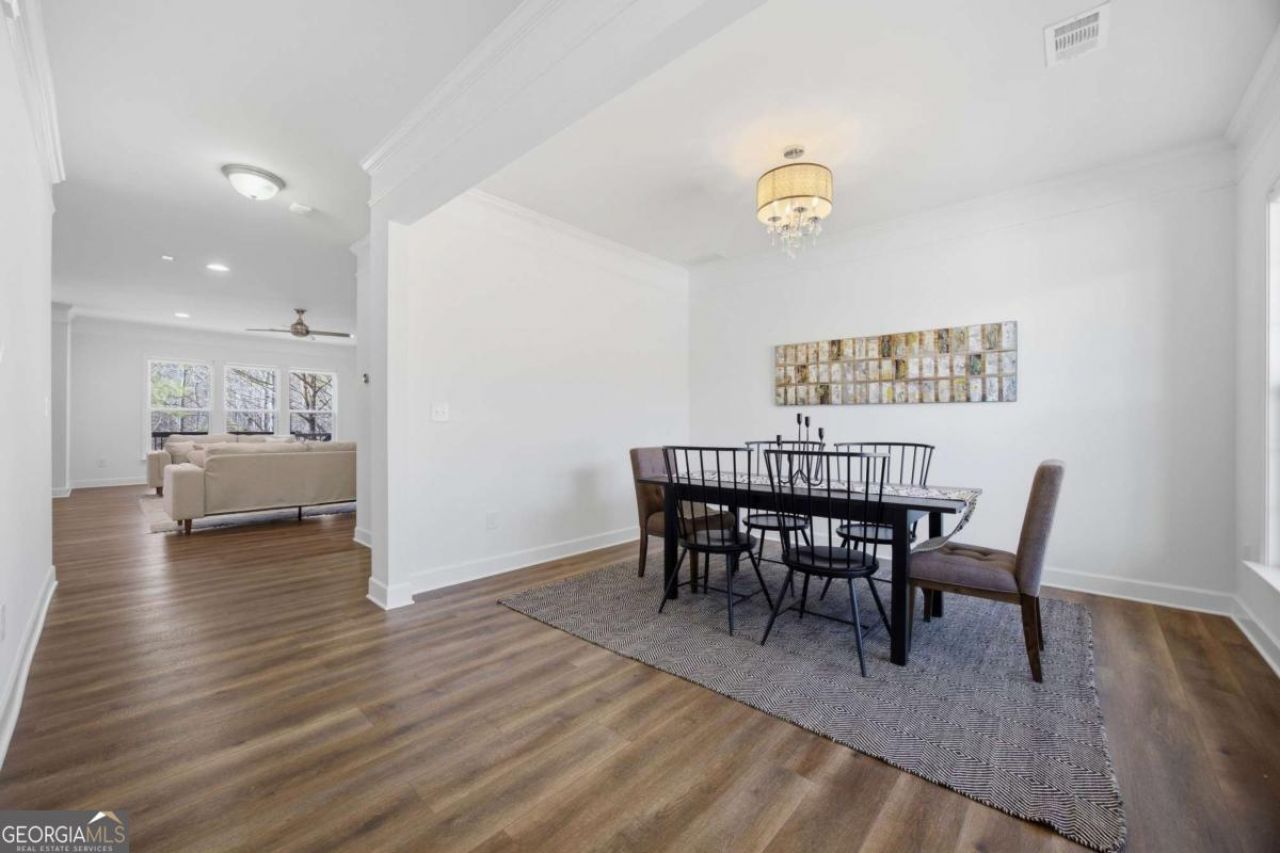 Turnkey living meets thoughtful design in this beautifully maintained 4-bedroom, 3.5-bath craftsman-style home nestled in the sought-after Barrington Estates community. Built in 2015 - and enhanced at construction with a 4-foot rear extension adding permanent square footage - this 3,768 SF home across two stories and a finished basement offers every comfort a discerning buyer could want, without a single item left on the to-do list. Step inside to soaring 9-foot ceilings on the main level, gleaming luxury vinyl plank floors (2019), and an open-concept layout anchored by a gourmet kitchen featuring stainless steel appliances, a gas cooktop, granite countertops, a center island with sink, dark wood cabinetry, and an impressive backsplash. Crown molding, recessed lighting, and a fireplace in the main living area set an elegant tone throughout. The main level also features a formal dining room, a comfortable living room with surround sound wiring in the ceiling, a private home office tucked into its own dedicated nook, and a half bath - perfectly suited for both daily living and entertaining. Upstairs, retreat to a spacious primary suite with a tray ceiling, walk-in closet, and an en suite bath complete with a garden tub, separate stall shower, and double vanity. Three additional bedrooms, a loft area, and a full hallway bath with double vanity round out the upper level. The finished basement is a true bonus, featuring tile flooring (2023), a media/home theater room wired and equipped with surround sound speakers, a full bath, and a flexible living area - ideal for guests, a gym, or game room. Outdoor living is where this home truly shines. A fully rebuilt deck (2024) with stair access to the backyard connects to an under-decking system (2024) with ceiling fans and electrical, creating a covered patio off the basement - perfect for rainy-day entertaining. Then there's the screened-in lanai - the sellers' favorite spot in the house, and it's easy to see why. Morning coffee, evening wine, a good book, a phone call with a friend - this is the kind of space that quietly becomes the best part of your day. A gas line stub at the rear deck is ready for your dream grill or fire feature, and a designated fire pit area in the backyard awaits your personal touch. A professionally engineered retaining wall (2016) expanded the usable yard, and a private fenced backyard completes the outdoor picture. Smart and efficient: enjoy a tankless on-demand gas water heater, a generator-ready electrical panel with zone-based backup capability, built-in Cat5 low-voltage wiring throughout the home, and fresh interior and exterior paint (2026). The garage features a built-in dog wash/utility bath and overhead storage racks. Community amenities include a pool, tennis courts, and more - all within the award-winning Lanier High School cluster. Minutes to I-985, I-85, GA-400, Lake Lanier, and Mall of Georgia. This home is move-in ready and waiting for its next chapter. Don't miss your opportunity - schedule your showing today.