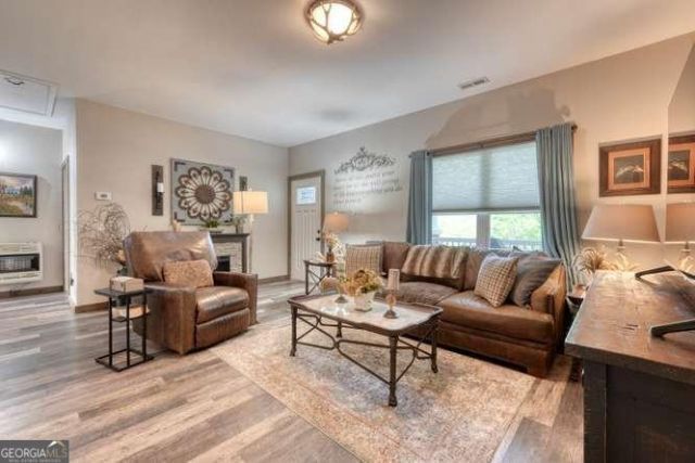 EXCLUSIVE TRACKROCK RETREAT | HOME + GUEST APARTMENT + RV HOOKUP | UNRESTRICTED Discover a rare offering in the heart of Trackrock-where peaceful, quiet surroundings meet desirable mountain living, less than 5 miles from downtown Blairsville. This custom Craftsman-style home offers quality finishes and effortless one-level living, set within a serene, established mountain setting. The 2BR/3BA main residence features a spacious formal dining room and living area, complemented by a well-appointed kitchen with stainless steel appliances, granite countertops, and tile backsplash. Handicap-accessible entry leads to a porte-cochere, expansive concrete parking + bonus 24x24 concrete pad offering both convenience and functionality. BONUS FEATURES: Separate addition showcases a grand covered entertainment pavilion with a stunning stone fireplace, ideal for hosting and relaxing. Additional 1-car garage with private apartment/man cave, jetted tub, provides excellent guest or extended living space. Further enhancing the property is a 45-ft covered RV hookup with full utilities and private deck, capturing year-round mountain views-a rare and valuable feature. NO RESTRICTIONS, generous parking, and exceptional versatility, this property presents a unique opportunity for a luxury mountain residence, multi-generational living, or income-producing investment. Conveniently located near hospital, dining, shopping, and entertainment, this is North Georgia mountain living at its finest.
