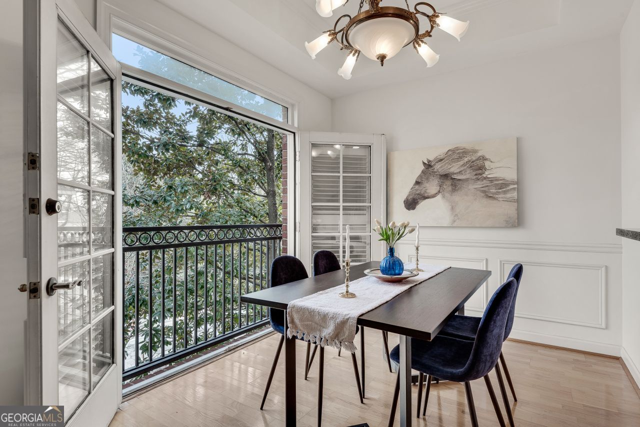 Yes, you can have it all! Live in the heart of vibrant Midtown-just steps from top dining, shopping and cultural venues and enjoy the tranquility of a beautiful, tree-lined street in a park-like community with lush courtyards and gardens. This spacious 2 story, 2-bedroom townhome features traditional architectural details like 10-foot ceilings, crown molding and plantation shutters. A fireplace in the living room and a Juliet balcony with views of Piedmont Ave and Midtown's Garden District add to the charm. The main level also includes a generous laundry room with plenty of storage, and a convenient half bath. Upstairs, the oversized primary suite features a walk-in closet and a well-appointed bathroom with double vanities, a soaking tub, and a separate shower. The secondary bedroom is generously sized and has easy access to a large, full bathroom directly across the hall. Stay active with the building's fitness center, or head out for a bike ride or stroll to Piedmont Park and the nearby Beltline. Unwind at the stunning rooftop pool with sweeping Midtown skyline views. With a walkscore of 97, everyday chores are easy. Additionally, two reserved spaces in the secure garage to park your car while you enjoy the midtown lifestyle -one a primo spot adjacent to the entry door!-complete this exceptional offering.