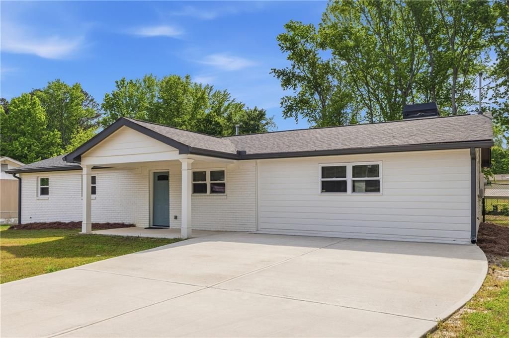Completely move-in ready modern starter home with no HOA, a large level lot, and a fully fenced backyard with an expansive deck perfect for entertaining. This beautifully renovated modern ranch features new appliances, newer roof, updated HVAC, natural gas service, spray foam insulation for improved efficiency, smart fixtures, and a spacious storage shed.Inside, enjoy hardwood floors throughout, an open-concept layout, and a stunning updated kitchen with a large island, modern finishes, and ample cabinet storage overlooking the main living space. The living room features custom built-in shelving and a fireplace, creating the perfect space to relax or gather with family and friends.Conveniently located with quick access to I-20, this is an opportunity to own a turnkey home with land, privacy, and modern style.