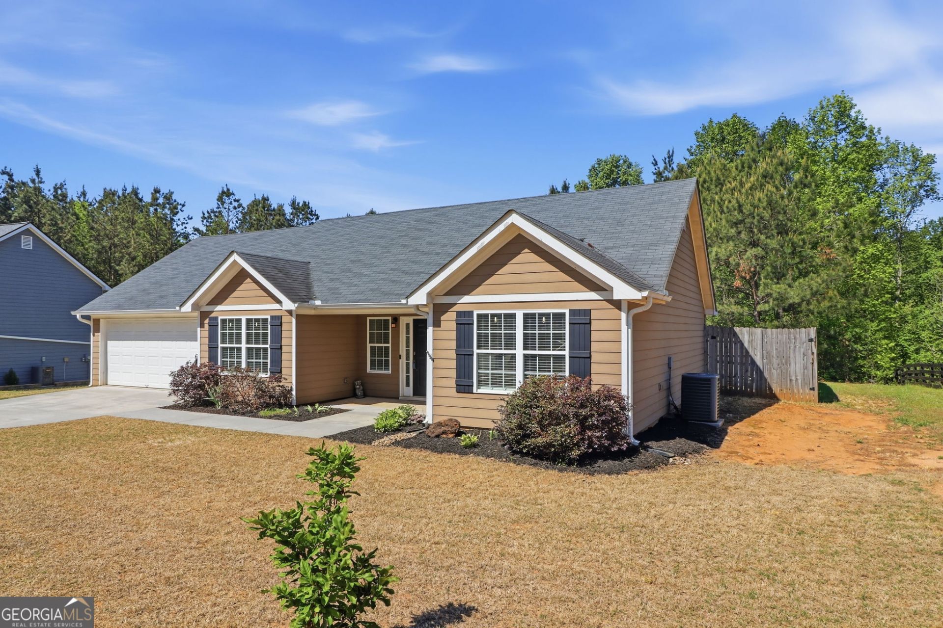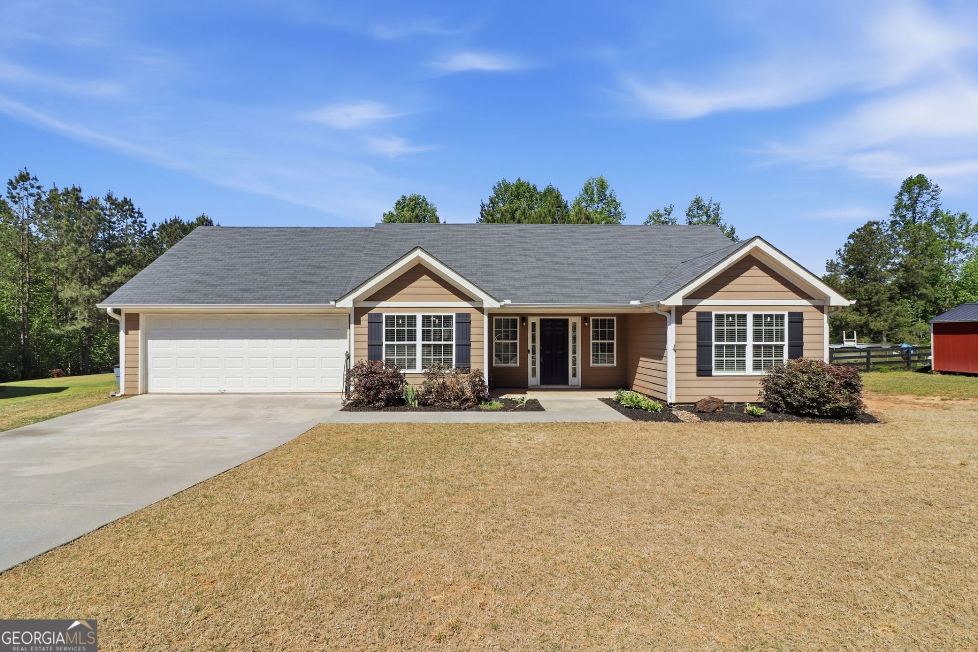 Dont miss this one! Nestled in the peaceful countryside of North Hall, this charming 3-bedroom, 2-bath ranch offers the perfect blend of comfort, space, and move-in-ready convenience. Situated on over an acre, this highly desirable split-bedroom floor plan provides both privacy and functionality for everyday living. Step inside to an inviting open-concept layout featuring a spacious great room with a cozy fireplace-perfect for relaxing evenings or gathering with family and friends. The well-appointed galley kitchen is designed for both style and efficiency, boasting stainless steel appliances, a custom backsplash, stained cabinetry, a breakfast nook, and easy access to a separate dining room-ideal for entertaining. The oversized primary suite serves as a private retreat, complete with a generous walk-in closet and an en-suite bath. Two additional well-sized bedrooms and a full bath complete the thoughtfully designed interior. Outdoors, enjoy a level, private, fenced backyard-perfect for pets, play, or hosting gatherings. Relax on the charming front porch or unwind on the expansive back patio, offering multiple options to enjoy the serene surroundings. With its desirable location, spacious lot, and welcoming layout, this home truly has it all. Ready for its next owners-schedule your showing today!